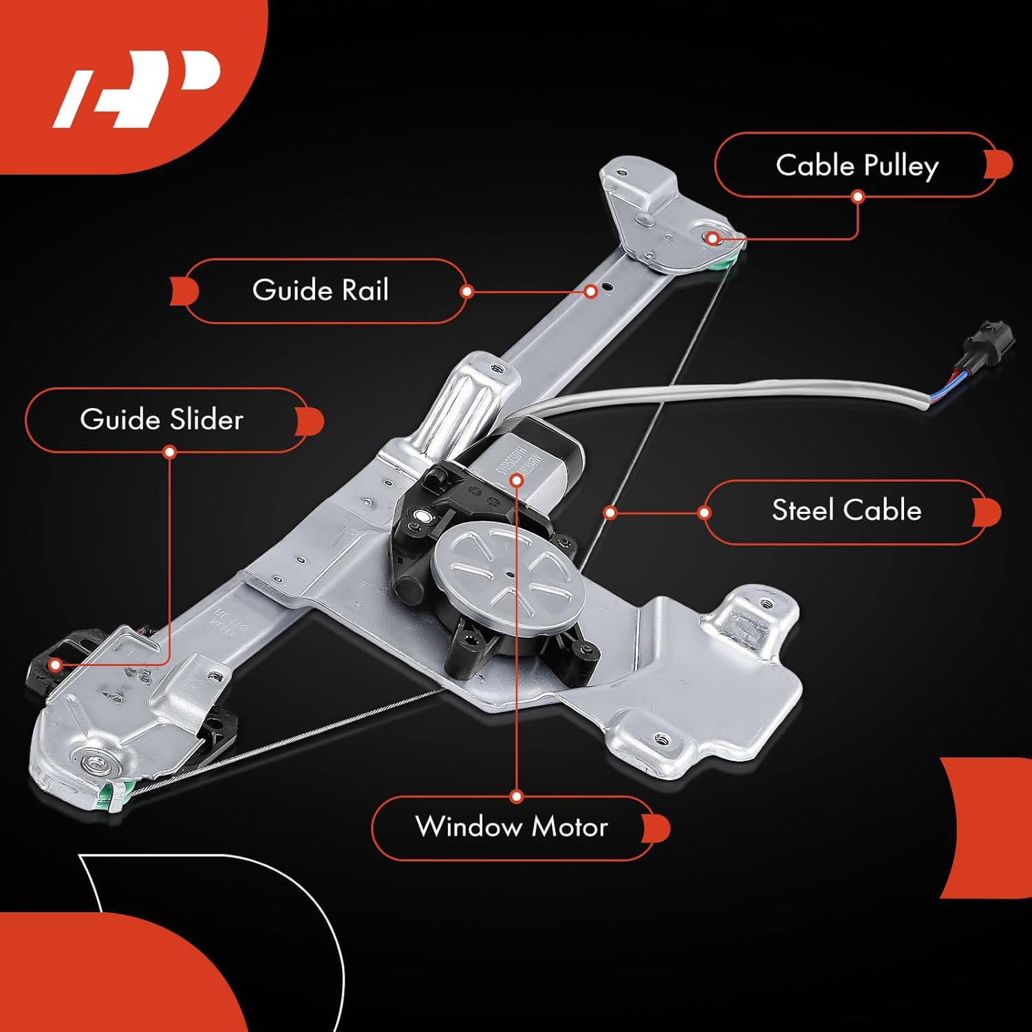 Regulador de Janela Elétrico A-Premium com Motor Compatível com Chevrolet Colorado, GMC Canyon 2004-2012 e Isuzu i-290 i-370 2007-2008 - Lado Direito Traseiro Passageiro
