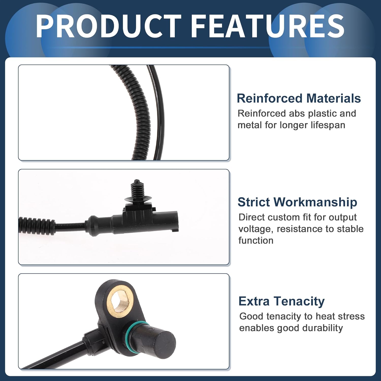 - Características do Produto: O nosso sensor de velocidade da roda reforçado evita que seu carro derrape ou deslize durante uma frenagem brusca. Ele fornece medições de sinal precisas e rápidas das velocidades das rodas, garantindo um desempenho de frenagem ideal.