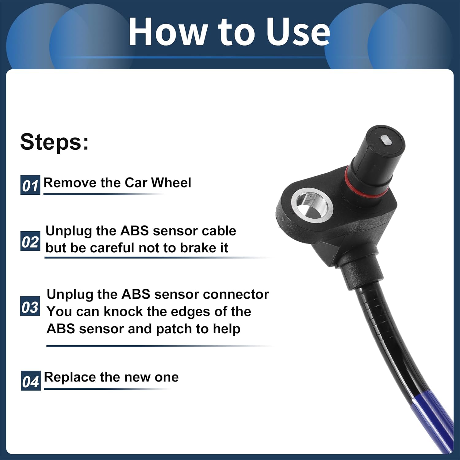 - Instalação Fácil / Profissional: A instalação é simples. Remova a roda do carro, desconecte o sensor ABS e o conector do sensor, e substitua pelo novo sensor ABS.