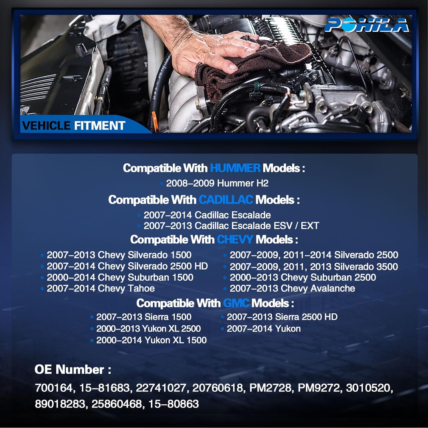- Compatibilidade: Este motor é compatível com uma ampla gama de veículos, incluindo Cadillac Escalade (2007-2014), Chevy Silverado (2007-2014), Chevy Avalanche (2007-2013), Chevy Suburban (2008-2013), Chevy Tahoe (2007-2014) e GMC Sierra (2007-2013), entre outros. Verifique a compatibilidade do seu modelo antes da compra.