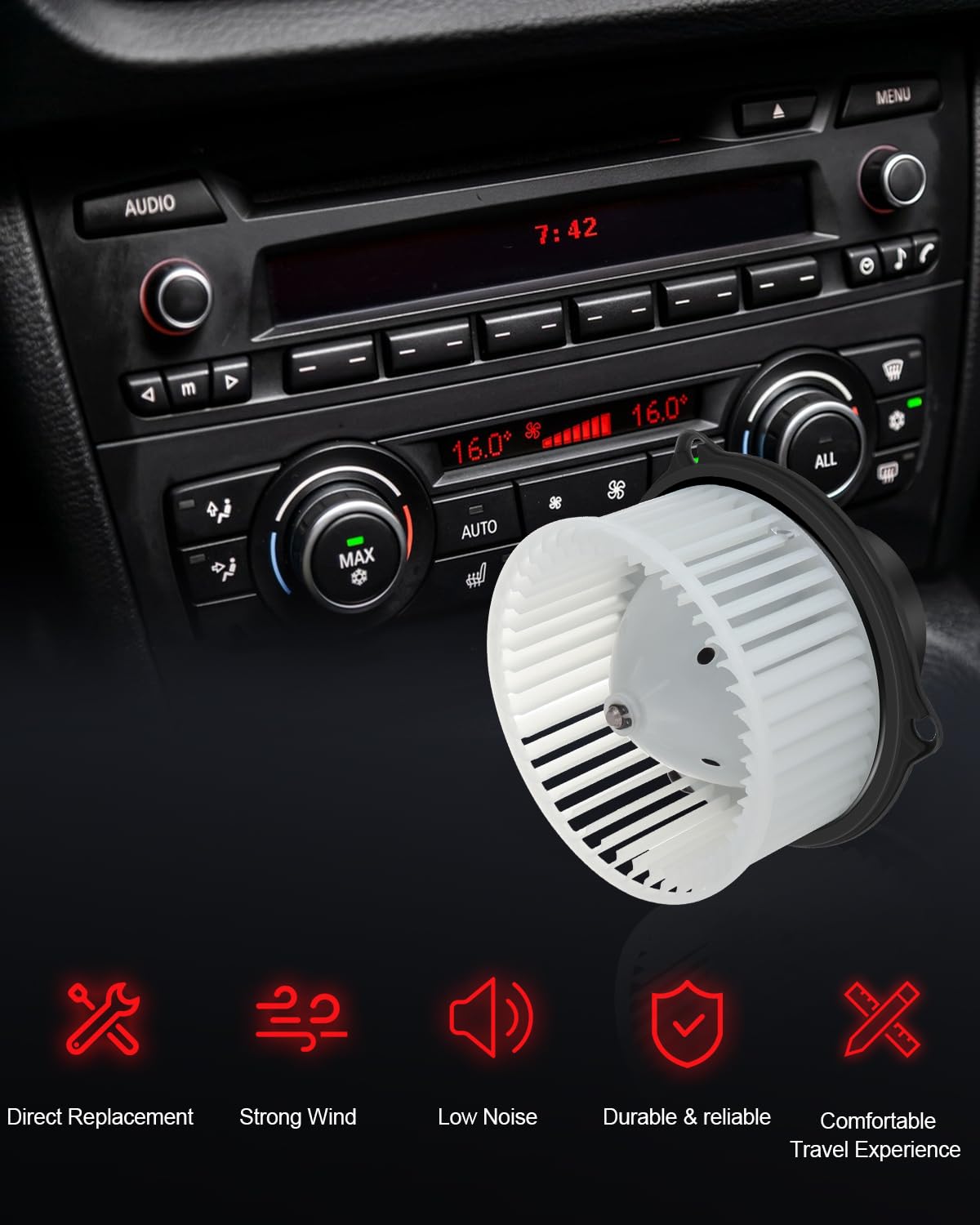 - [FORÇA DE VENTO INTENSA PARA O VEÍCULO] —- Este ventilador adota um rotor de aço silício, fio de cobre esmaltado, rolamentos auto-alinháveis permanentemente lubrificados e um motor eficiente, proporcionando uma saída de vento forte, reduzindo efetivamente a temperatura do motor e fortalecendo o efeito do ar condicionado no carro, além de purificar o ar para manter o desempenho do veículo.