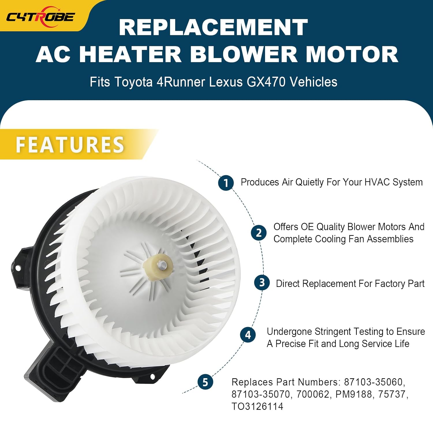 O Motor do Ventilador do Aquecedor de Ar Condicionado (AC Heater Blower Motor HVAC) é uma peça essencial para garantir o conforto e a eficiência do sistema de climatização do seu veículo. Compatível com o Toyota 4Runner de 2003 a 2009 e o Lexus GX470 de 2003 a 2007, este motor de ventilador é projetado para substituir as peças originais com os números de referência 87103-35060, 87103-35070, 700062, PM9188, 75737, TO3126114.