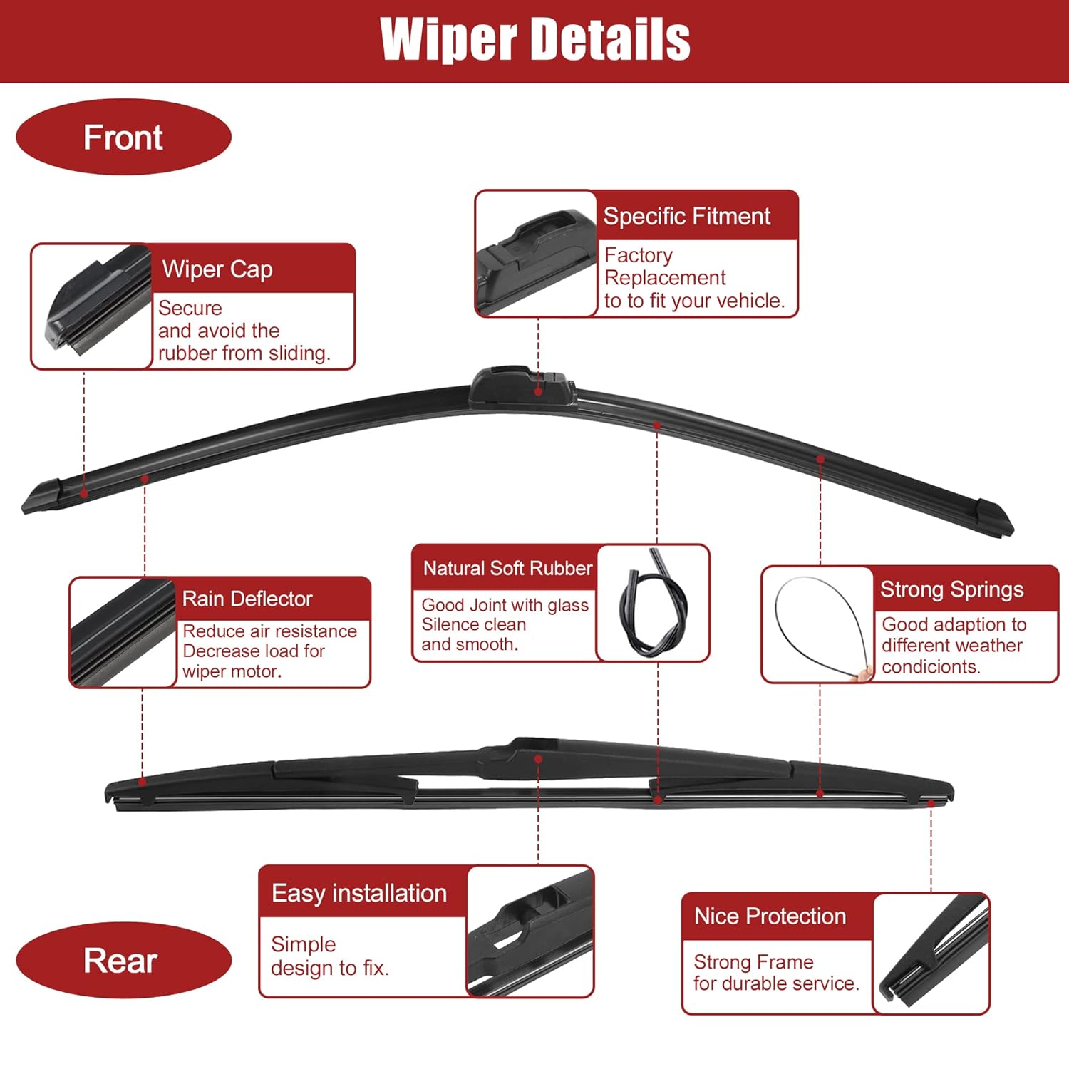 Pacote Inclui: O conjunto contém 2 palhetas para o limpador frontal e 1 palheta para o limpador traseiro, oferecendo tudo o que você precisa para uma substituição completa.