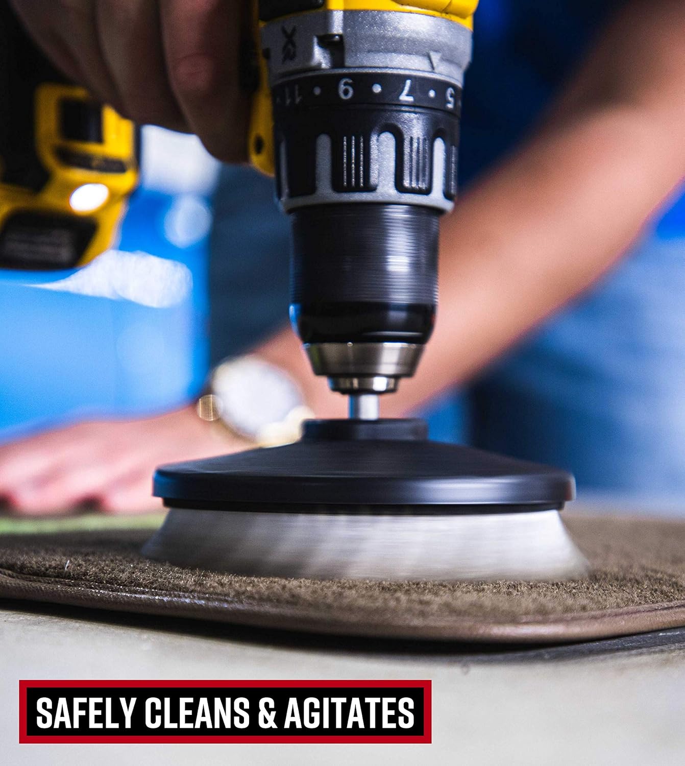 A escova de carpete se conecta facilmente a qualquer furadeira, permitindo uma rotação de alta velocidade que extrai manchas e sujeira de tecidos, estofados e assentos de couro com facilidade. Com um eixo de aço robusto e de troca rápida de um quarto de polegada, a escova é compatível com a maioria das furadeiras e drivers disponíveis no mercado.