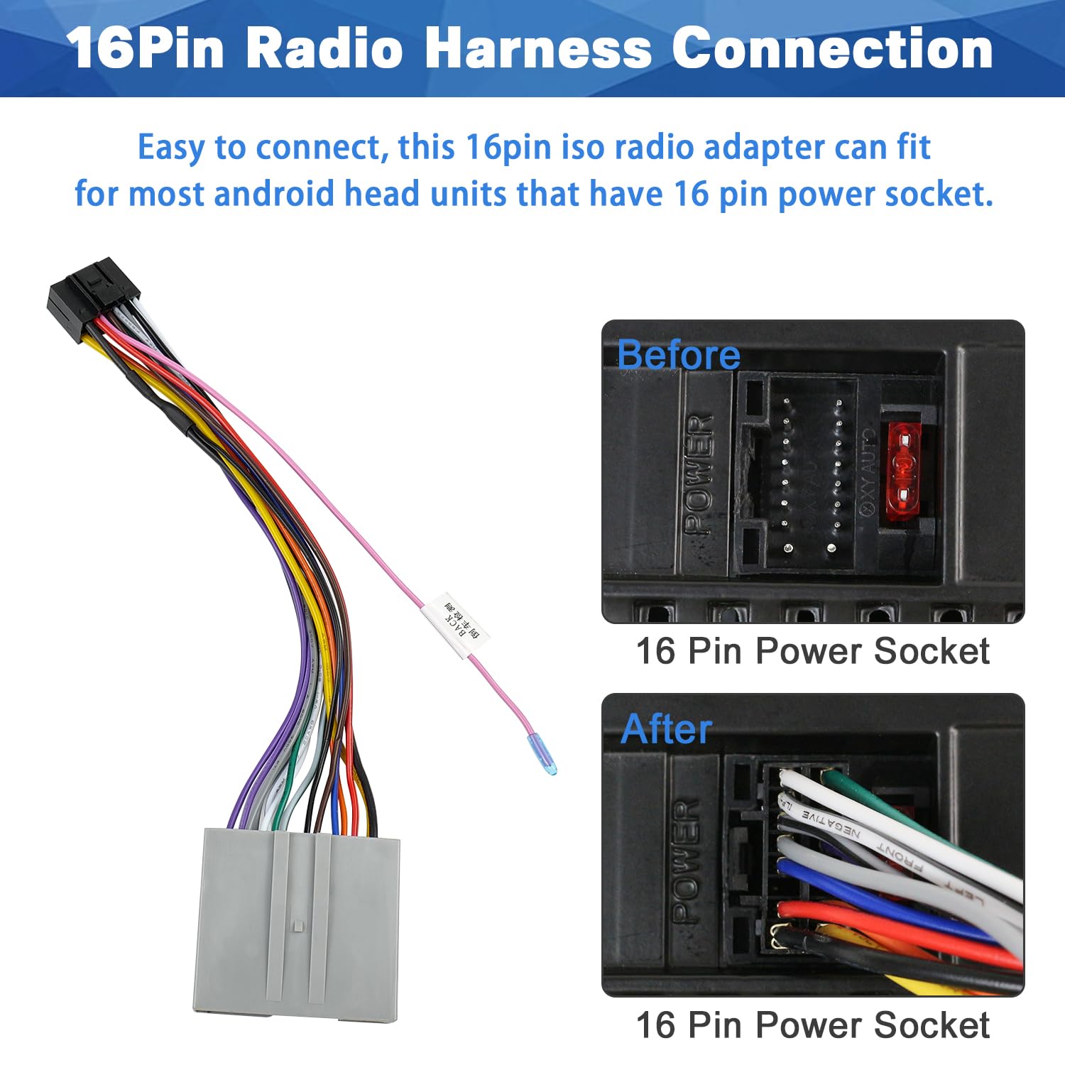 – Conector ISO de 16 Pinos: O adaptador possui um conector ISO de 16 pinos, ideal para rádios de 7 a 10 polegadas, garantindo uma conexão segura e eficiente. Verifique se o soquete de energia do seu rádio é padrão de 16 pinos.