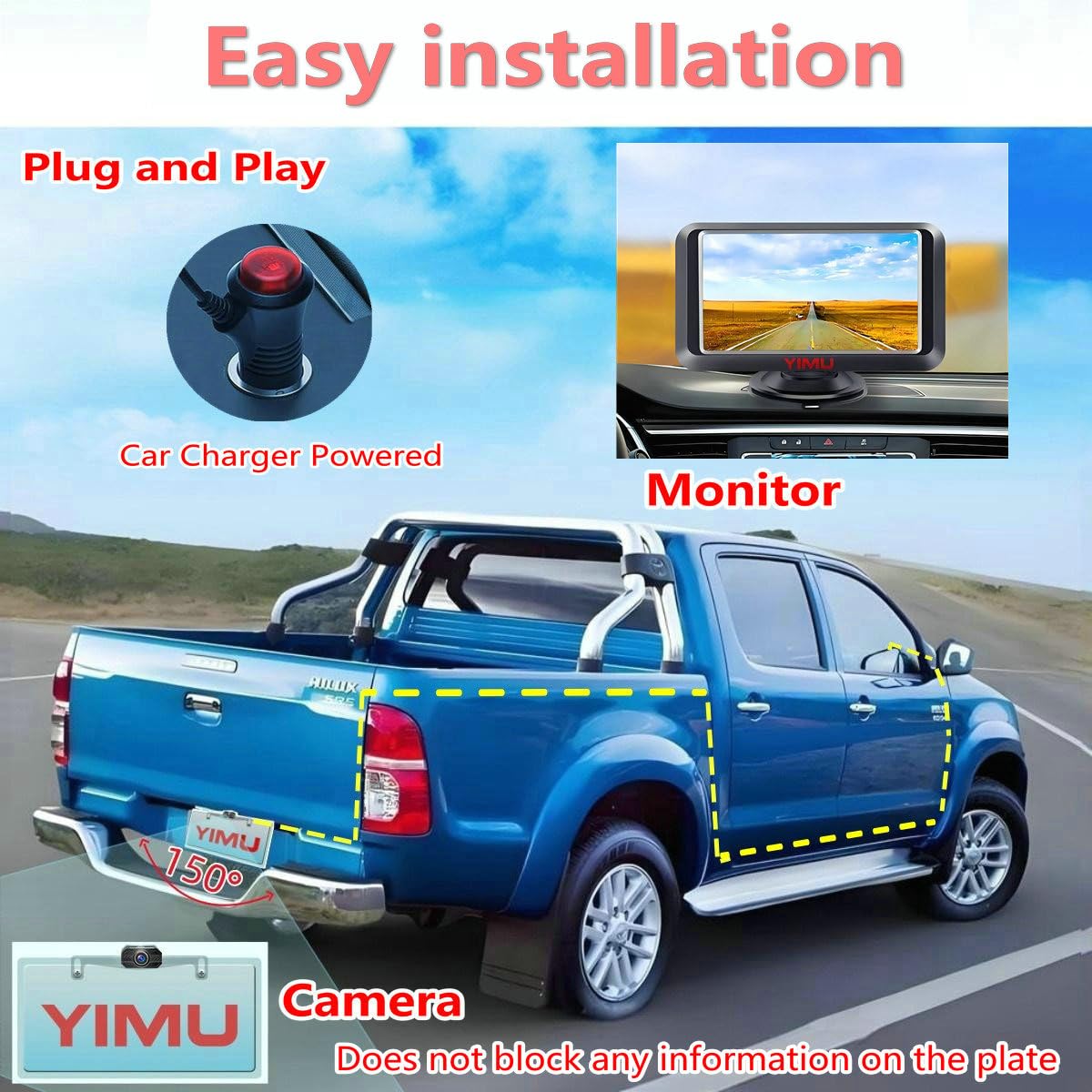 – Sinal Confiável: A câmera de ré YIMU oferece estabilidade superior de sinal em comparação com opções sem fio, minimizando perdas de energia durante a transmissão e garantindo imagens em HD em tempo real.