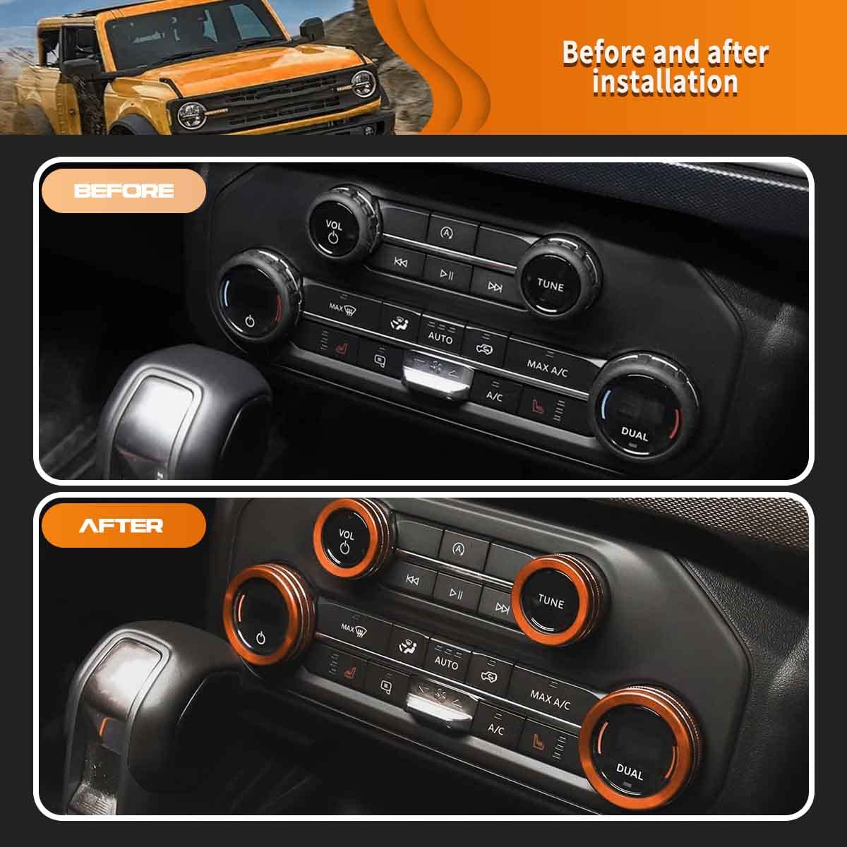 A Capa do Botão de Comando do Interruptor de Farol do Ar Condicionado para Ford Bronco Offroad 2/4 Portas (2021-2023) é um acessório indispensável para os proprietários que desejam aprimorar a estética e a funcionalidade do interior do seu veículo. Com um design meticulosamente elaborado, esta capa é feita sob medida para o Ford Bronco Offroad, garantindo um encaixe perfeito e uma instalação descomplicada. É importante ressaltar que este produto não é compatível com o Ford Bronco Sport.