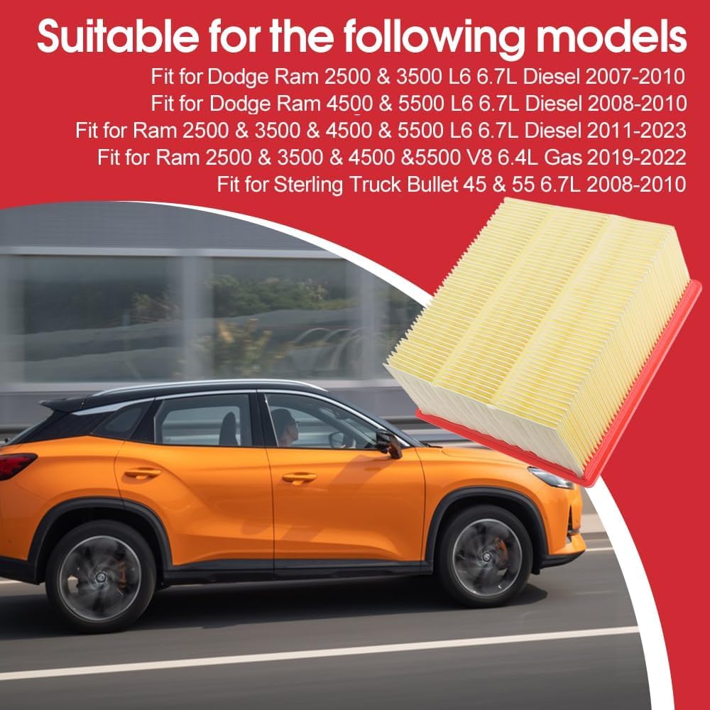 O Filtro de Ar Substituto 53034051AB é a solução perfeita para quem busca manter o desempenho e a eficiência dos motores Dodge Ram 2500, 3500, 4500 e 5500, tanto na versão Diesel com motor Cummins 6.7L (2011-2023) quanto na versão a gasolina com motor V8 6.4L (2019-2022). Este filtro foi desenvolvido com tecnologia avançada para garantir que o motor receba um fluxo de ar limpo e desobstruído, essencial para o funcionamento ideal do veículo.