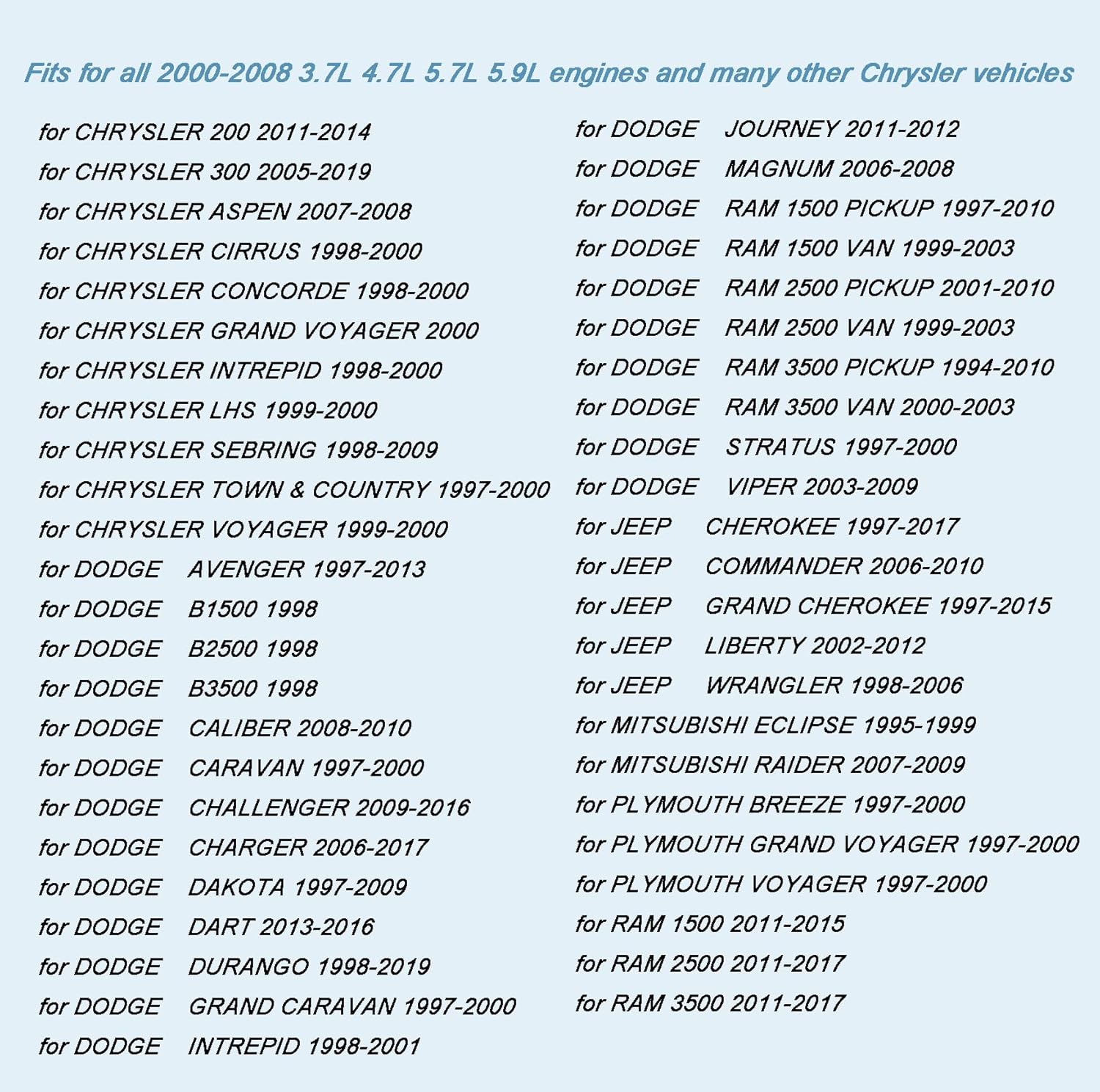 – Compatibilidade: Projetado para motores Chrysler, Dodge, Ram e Jeep Wrangler de 2000 a 2008, incluindo 3.7L, 4.7L, 5.7L e 5.9L.