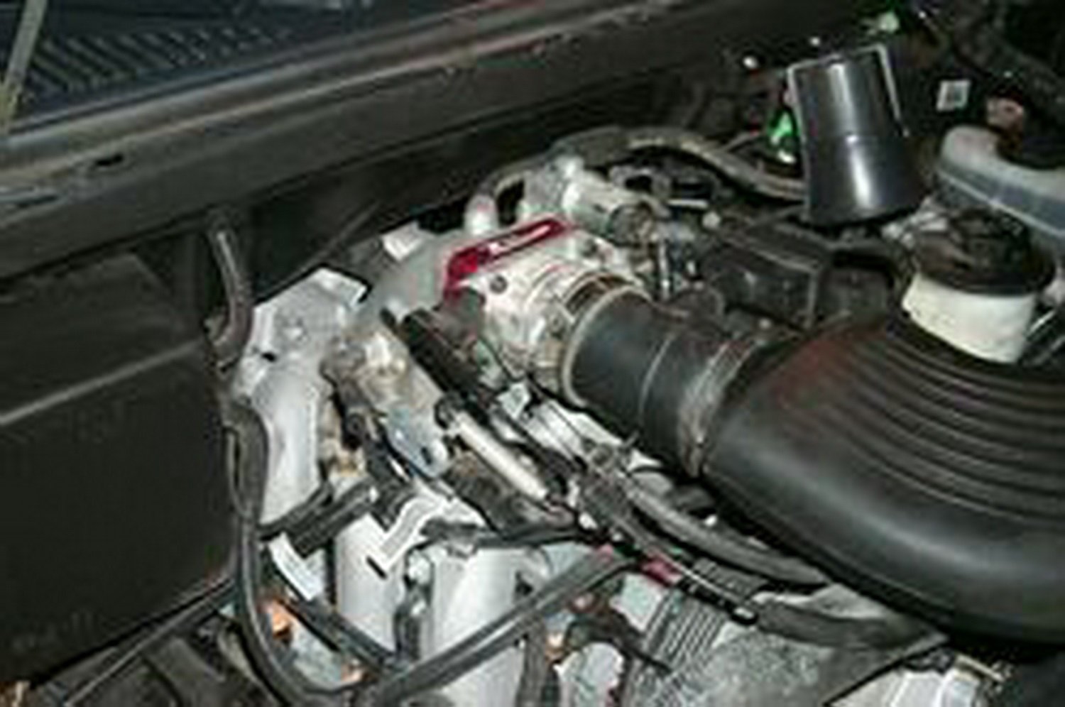 3. Instale o Espaçador: Posicione o Airaid PowerAid entre o corpo de borboleta e o coletor de admissão, alinhando os furos de montagem.