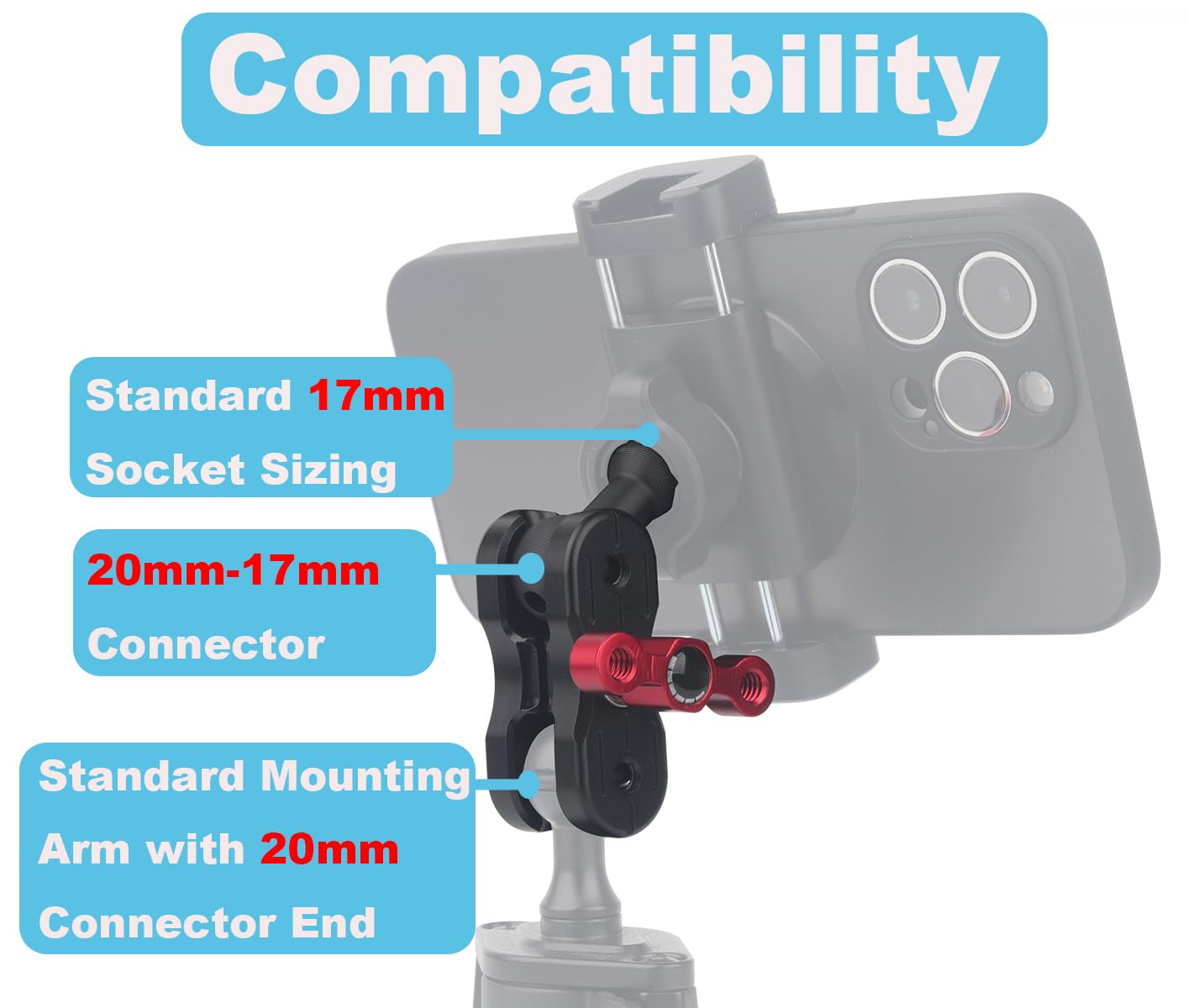 Even though most cell phone mounts come with 17mm ballheads, there are exceptions.