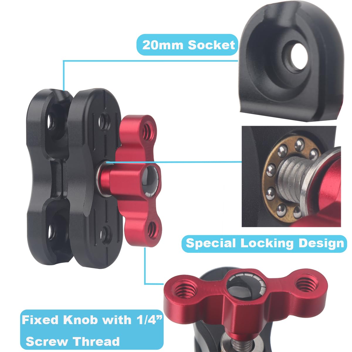 Fabricado em alumínio CNC sólido e leve, o braço garante que seu dispositivo permaneça seguro, mesmo em condições adversas. O design compacto do braço curto de 2.36 polegadas proporciona menos alavancagem, resultando em uma montagem mais estável. Além disso, o grande parafuso de aperto permite um bloqueio fácil e seguro, garantindo que seu equipamento esteja sempre na posição desejada.