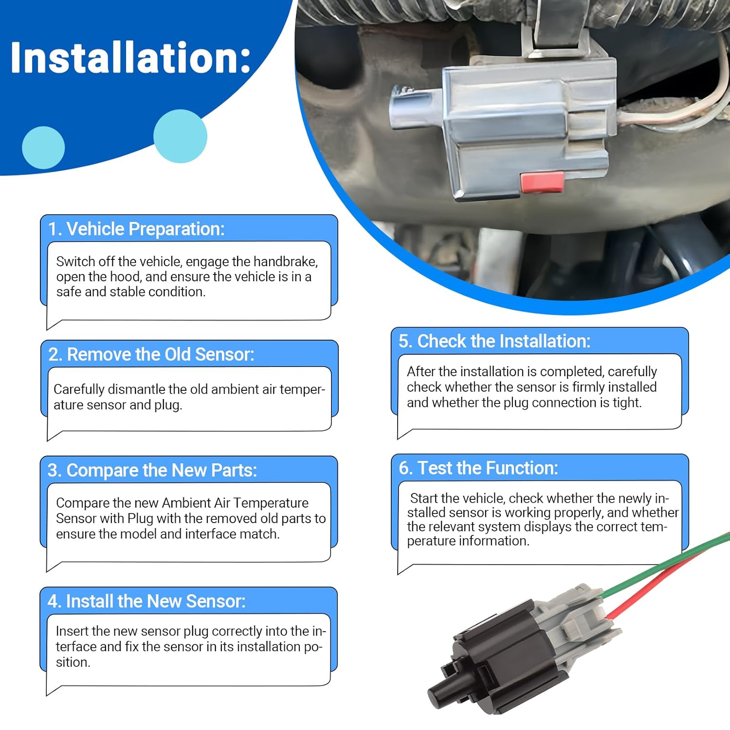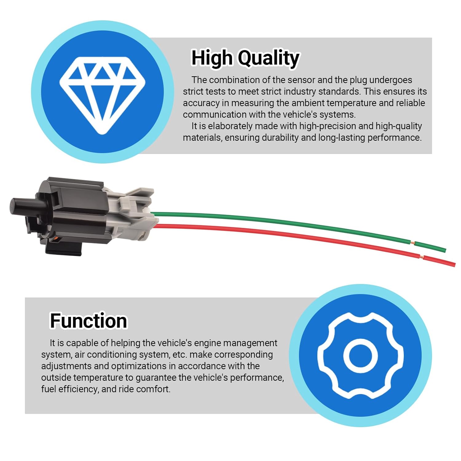 - Function: Este sensor auxilia os sistemas de motor e ar condicionado do veículo a fazer ajustes e otimizações com base na temperatura externa, garantindo melhor desempenho, economia de combustível e maior conforto na condução