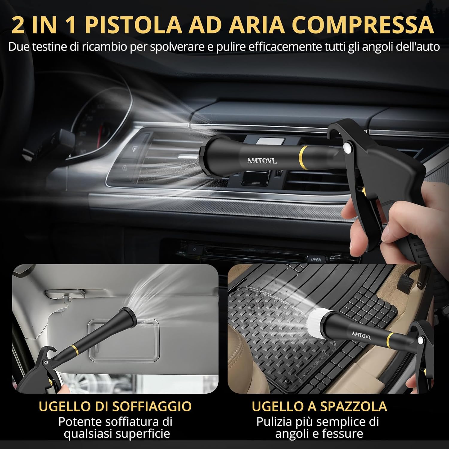 Pistola de Limpeza de Carro AMTOVL – Soprador de Ar para Detalhamento Interno, Limpeza Rápida de Poeira e Sujeira, Kit de Detalhamento Automotivo com Alta Pressão