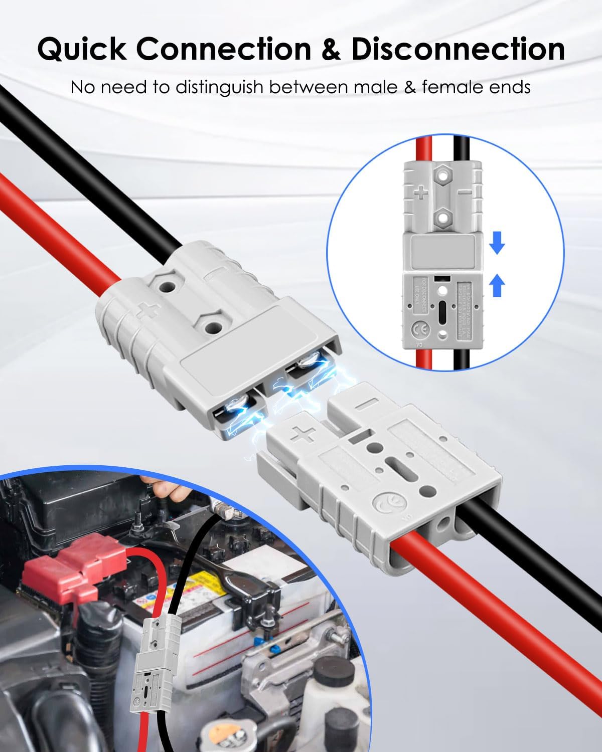 A versatilidade do Kit de Conectores Anderson 50A permite sua aplicação em uma ampla gama de veículos elétricos e ferramentas, como empilhadeiras, carrinhos de golfe e scooters elétricas. O design de conexão rápida facilita a instalação e remoção, permitindo que você conecte e desconecte a bateria de forma prática e segura.