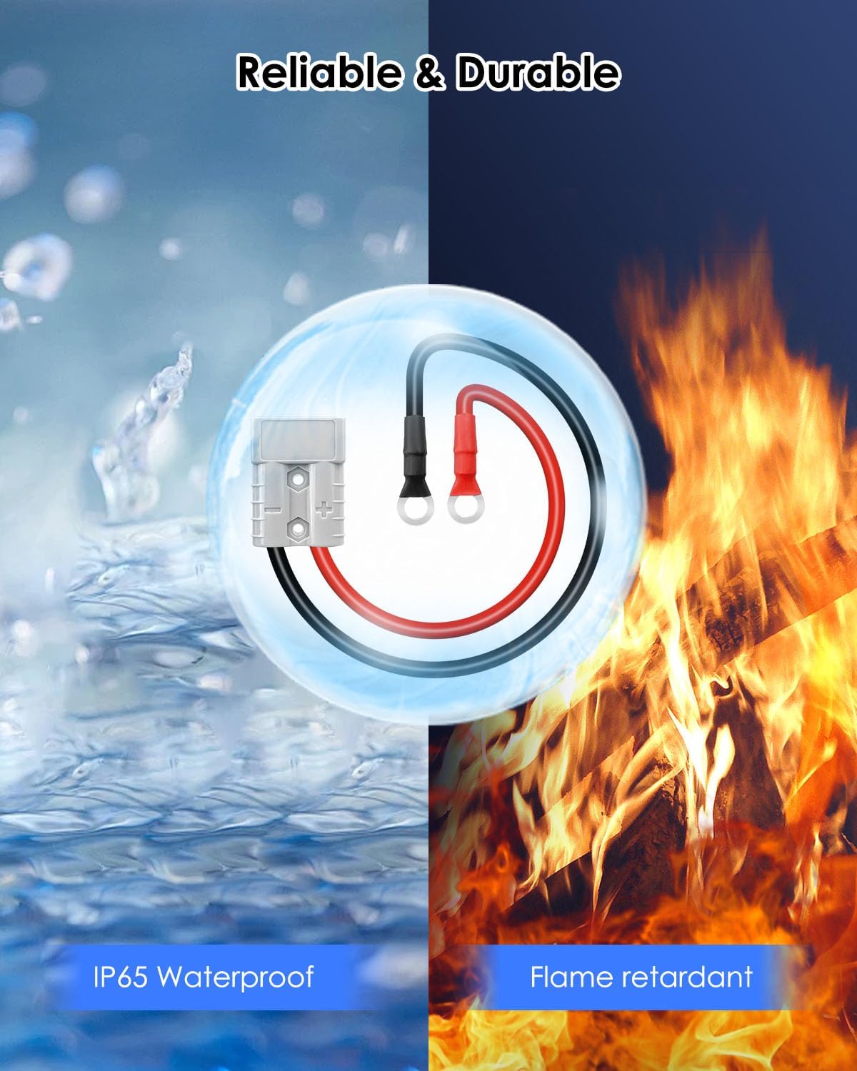 A durabilidade é um dos principais atributos deste kit. Fabricado com material PC retardante de chama e fios de cobre prateado 8AWG, o conector assegura uma longa vida útil e confiabilidade em diversas condições. A capa de silicone de segurança suporta temperaturas elevadas de até 200°C, tornando-o ideal para ambientes desafiadores. A resistência ao impacto é aprimorada pela extremidade de aço mola, que aumenta a resistência a vibrações e impactos, garantindo a confiabilidade a longo prazo do produto.