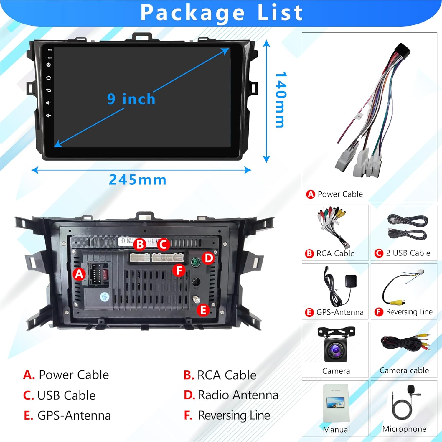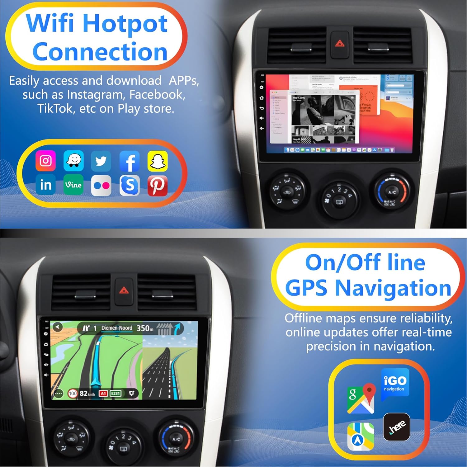 – Modelo: Rádio Android 14 para Toyota Corolla (2009-2013)