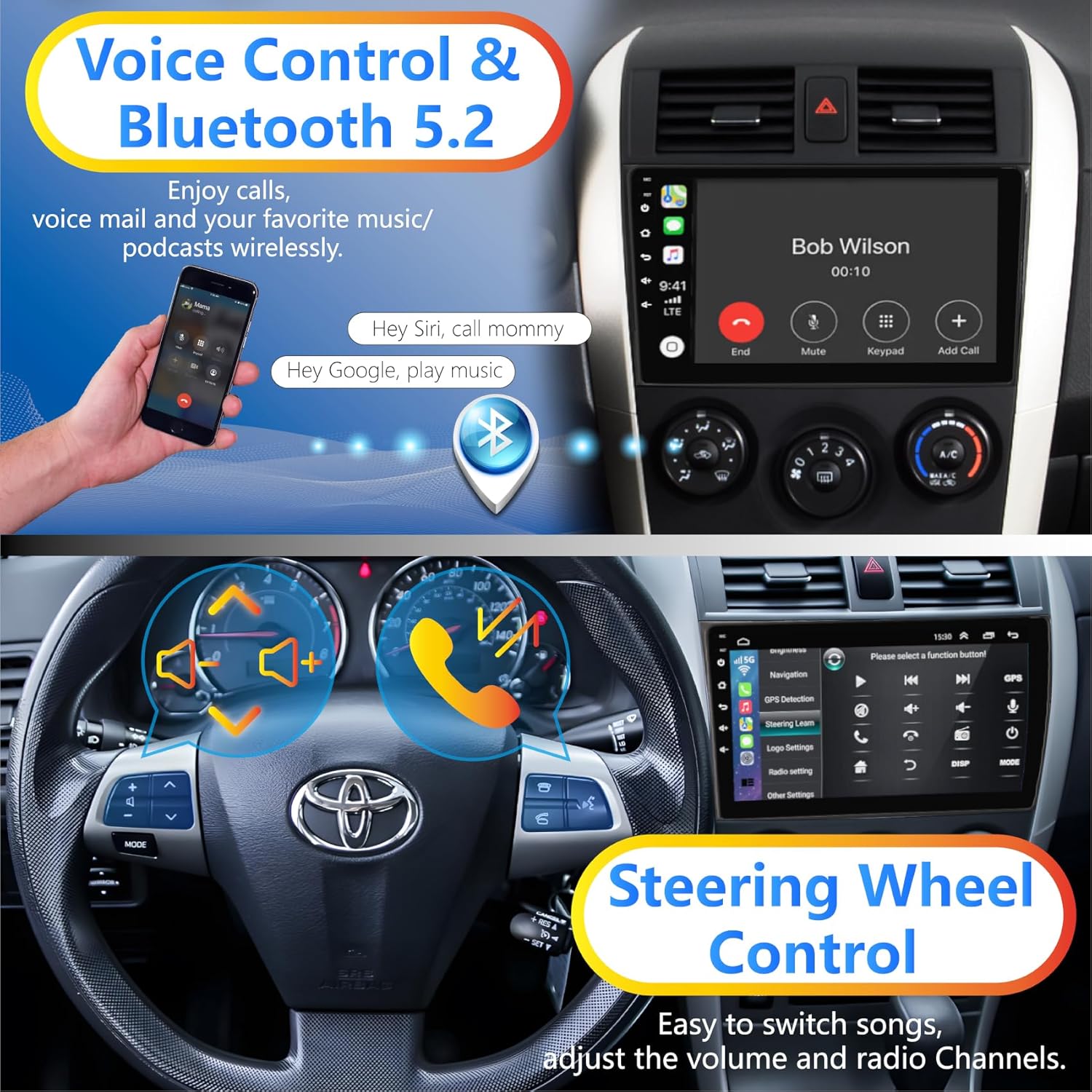 Rádio Automotivo Android 14 para Toyota Corolla 2009 a 2013 com Suporte a Wireless CarPlay