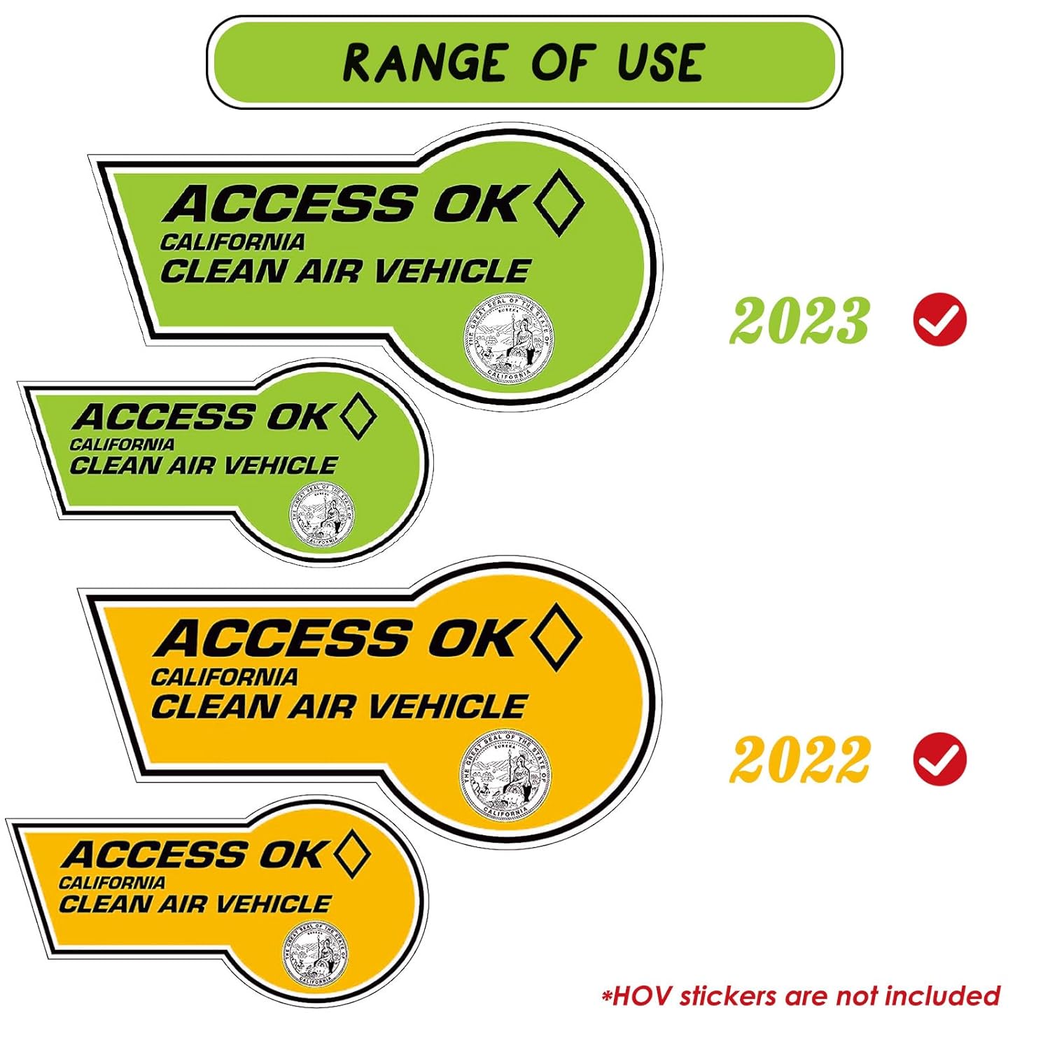 - Compatível com Adesivos HOV de 2022 a 2025: Este produto é projetado especificamente para os adesivos HOV da Califórnia: amarelo de 2022, verde de 2023, vermelho de 2024 e azul de 2025.