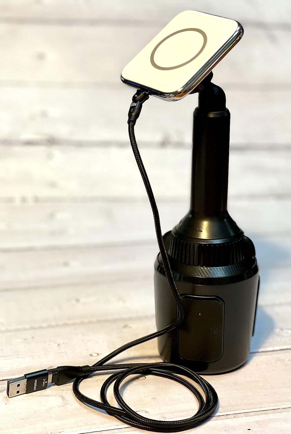 This has a more substantial feel than the three I ordered in this category of MagSafe cup holder with ability to charge. Was also the more affordable of the group. One part did however break with the week. Amazon is sending a replacement so I will soon know if the is a problem with this particulate item, or the design.