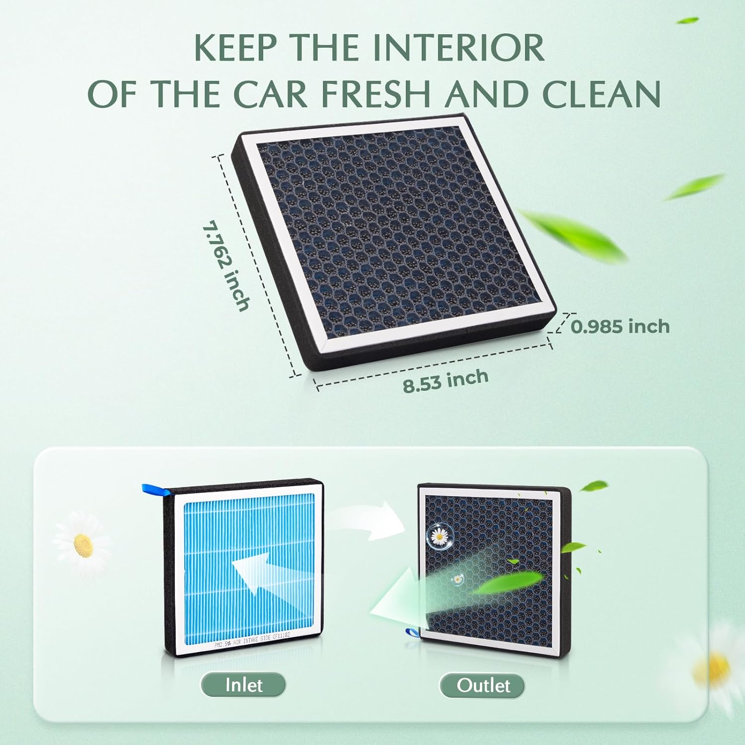 O filtro de cabine é infundido com carvão ativado de casca de coco, que gera um ar fresco e revigorante. Para manter o desempenho ideal do sistema HVAC, recomenda-se a substituição a cada 12 meses ou 12.000 milhas.