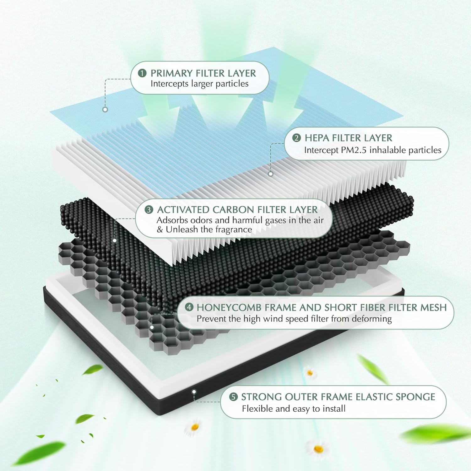– Filtragem de Cinco Camadas: Desempenho superior na filtragem de poluentes e alérgenos.