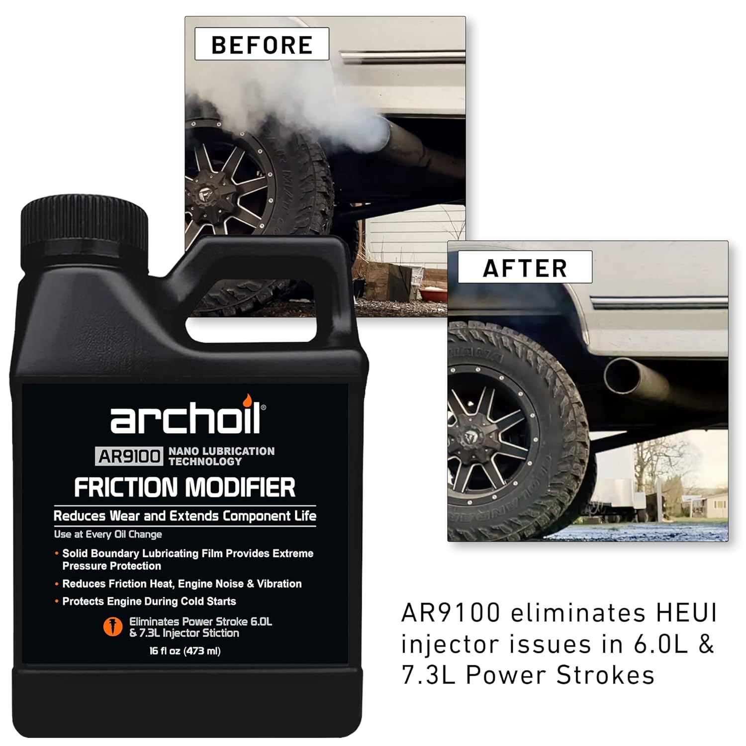 O Archoil AR9100 é um aditivo para óleo de 16oz projetado para otimizar o desempenho de todos os veículos, especialmente os motores Power Stroke. Este produto inovador é a solução ideal para problemas de injetores em arranques a frio nos motores 6.0L e 7.3L Power Stroke, proporcionando uma experiência de condução mais suave e eficiente. Ao tratar um Power Stroke, o AR9100 atua como um modificador de atrito, reduzindo o desgaste e estendendo a vida útil dos componentes do motor.
