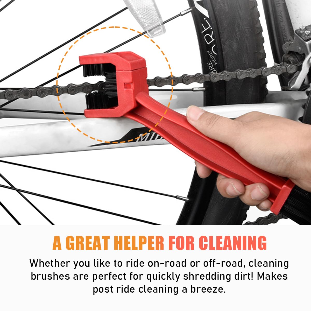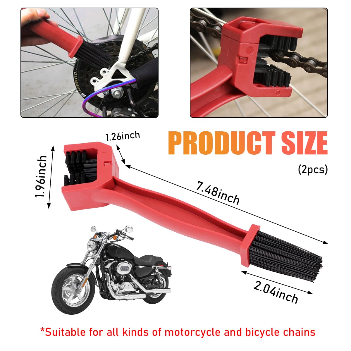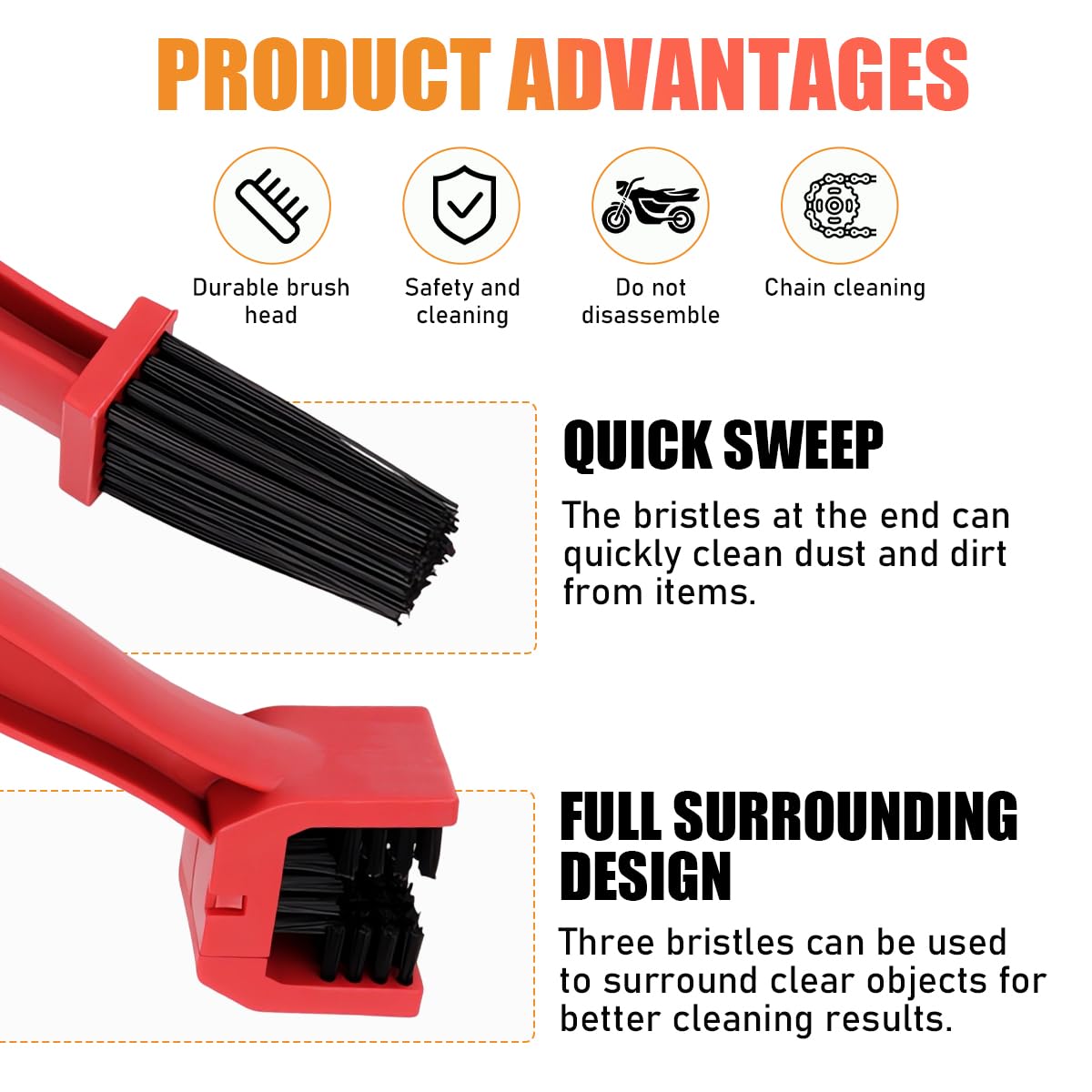 If you need a brush to remove dirt from your chain, then you might be into motocross or adventure riding. I like these brushes to work the chain cleaning product into the chain before I rinse off. Bristles are stiff enough to remove dirt, but if you have product on chain to clean, then be careful this doesn’t spray you with dirt and cleaner. Run the wheel (manually) and let the chain do the work versus moving brush back and forth. These brushes work better than many other styles, like the round ones. I’m satisfied with the quality for my use.