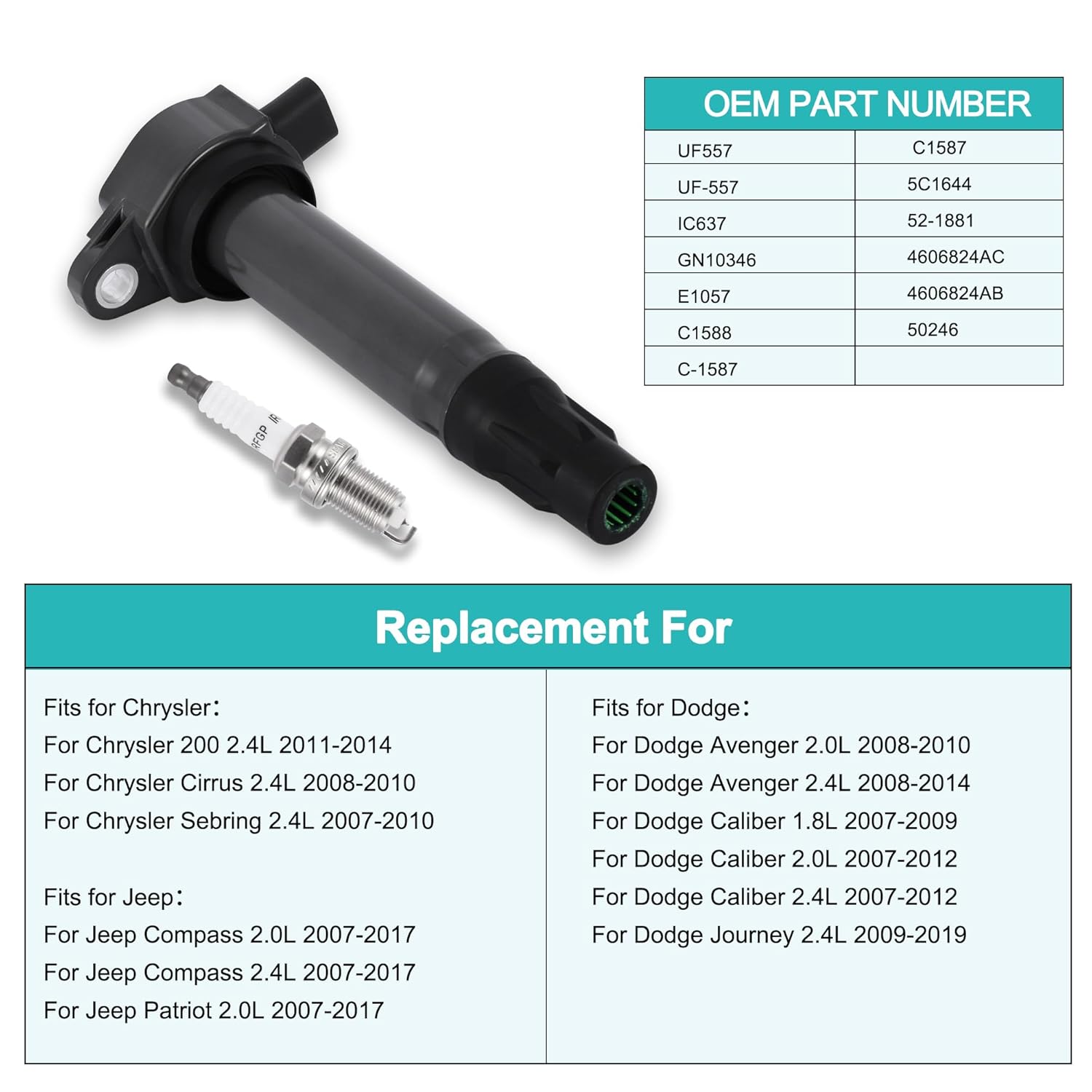 O conjunto de bobinas de ignição AULNIK UF557 é a escolha ideal para quem busca desempenho e confiabilidade em veículos Chrysler, Dodge e Jeep. Com um design inovador e tecnologia avançada, este conjunto é compatível com uma variedade de modelos, incluindo Chrysler 200 (2011-2014), Dodge Avenger (2008-2014) e Jeep Compass (2007-2017). Cada bobina é projetada para atender aos números de peça OEM, como UF557, IC637 e GN10346, garantindo uma substituição precisa e eficiente.