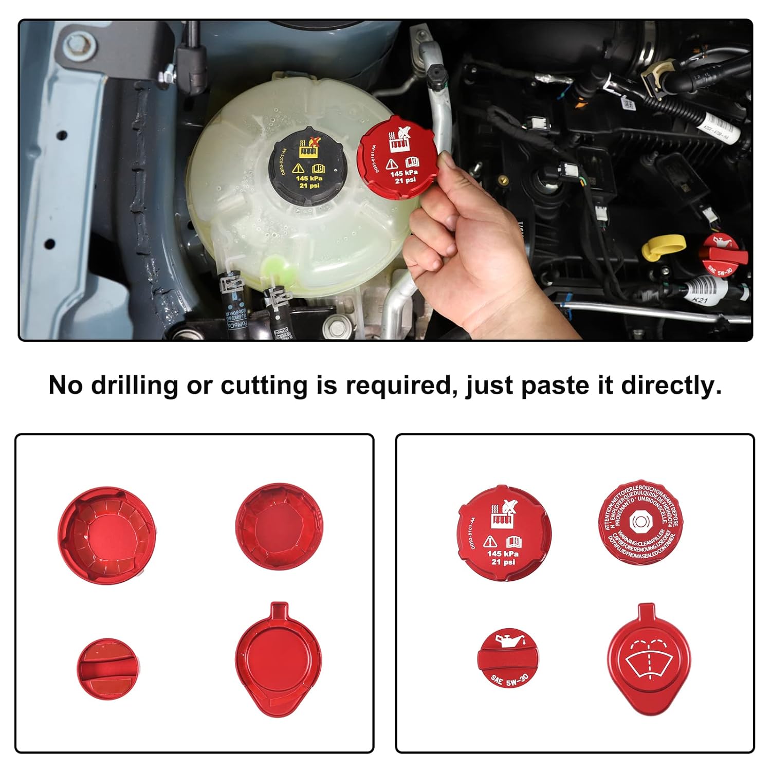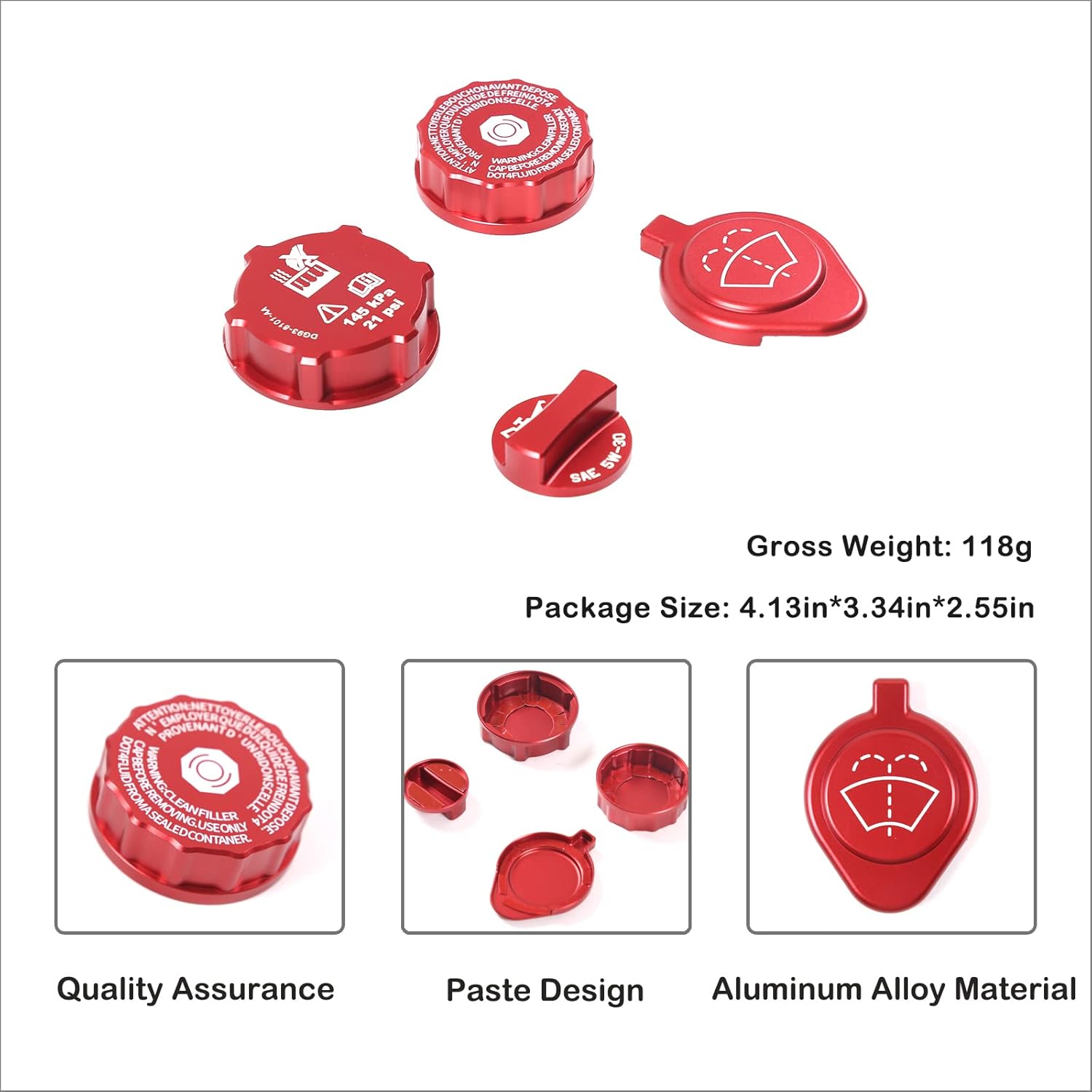 – Número de Peças: 4 (tampa de radiador, tampa de óleo, tampa de fluido de freio, tampa de fluido de lavagem).