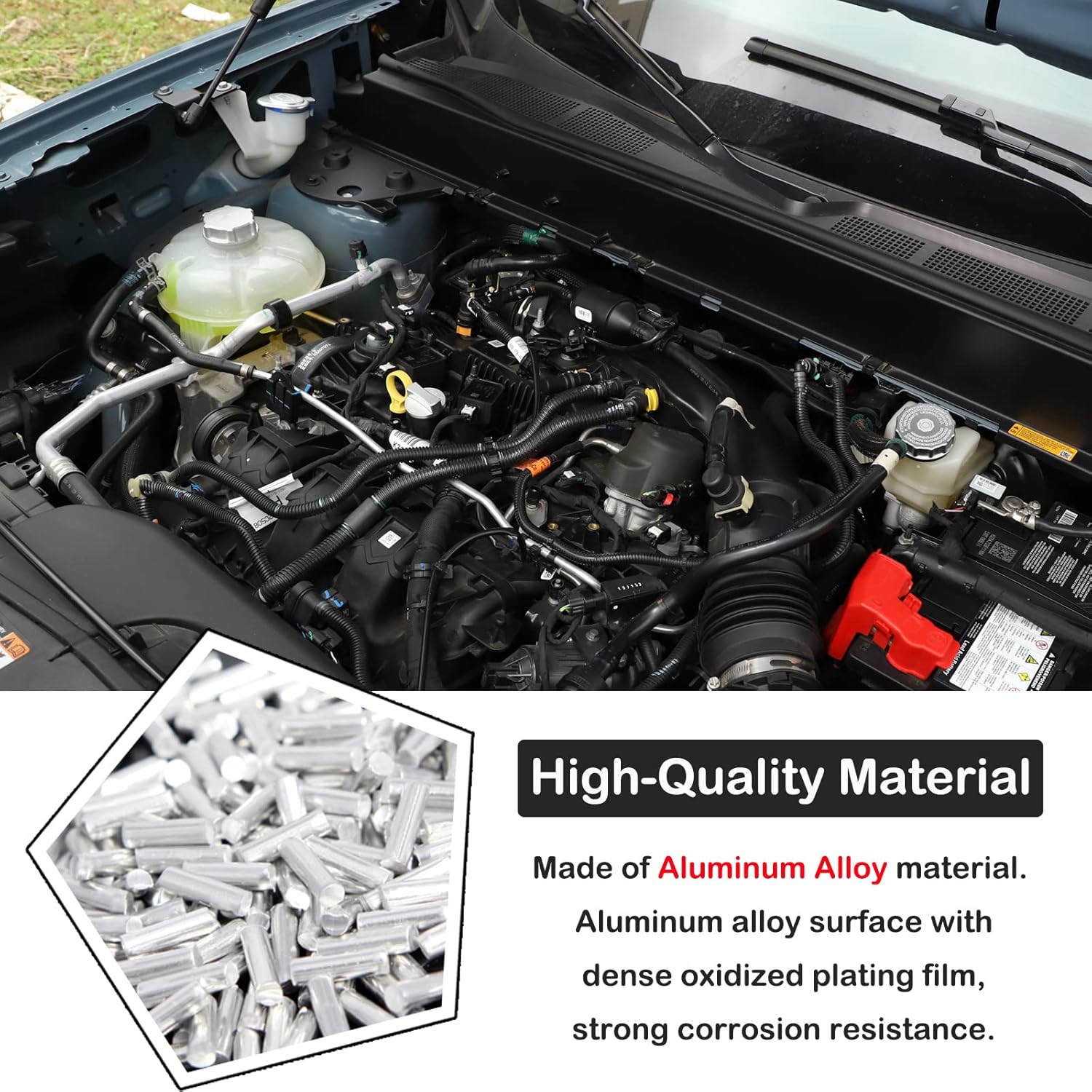 Conjunto de Tampas de Óleo de Motor Aunginsy compatível com Ford Maverick 2022 e 2023, fabricado em liga de alumínio. Inclui tampa de óleo do motor, tampa do radiador, tampa do fluido de freio e tampa do fluido de lavagem. Oferece durabilidade, resistência à corrosão e um ajuste perfeito, garantindo a proteção dos fluidos do veículo e um visual aprimorado sob o capô. Ideal para quem busca qualidade e estilo para o seu Ford Maverick.
