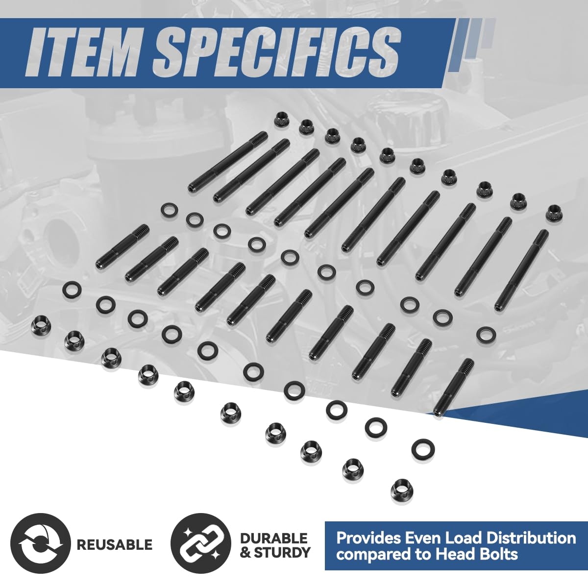 Descrição do Produto: Auto Dynasty [1/2″ Thread Blocks] 12-Point Cylinder Head Studs Kits