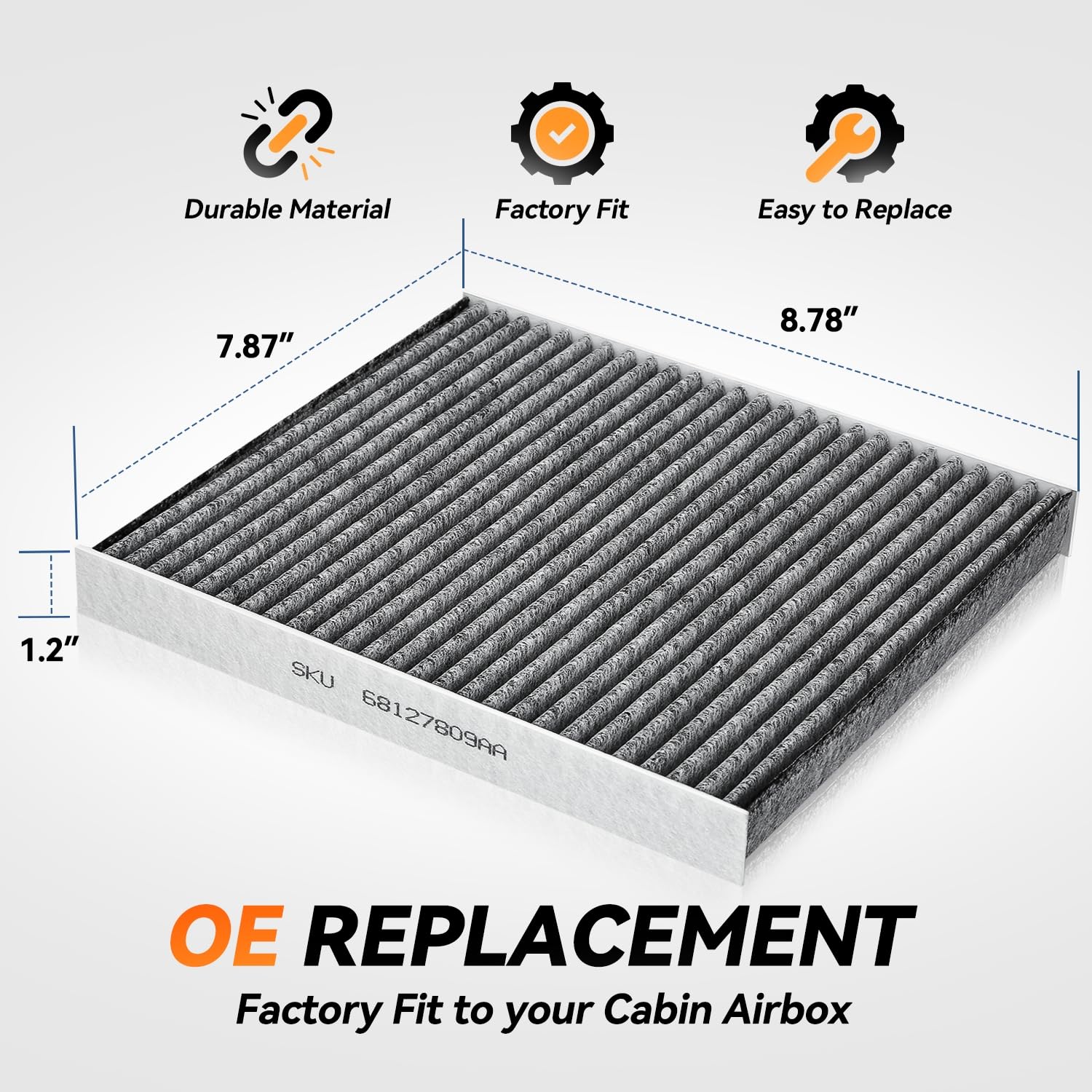 O filtro é construído com um material sintético avançado que inclui uma camada de fibra PET, carvão impregnado e algodão, projetado para proporcionar um alto fluxo de ar e uma filtragem excepcional. Este design inovador remove efetivamente poeira e partículas suspensas no ar, refrescando o ar da cabine e controlando odores, criando um ambiente mais limpo e saudável.