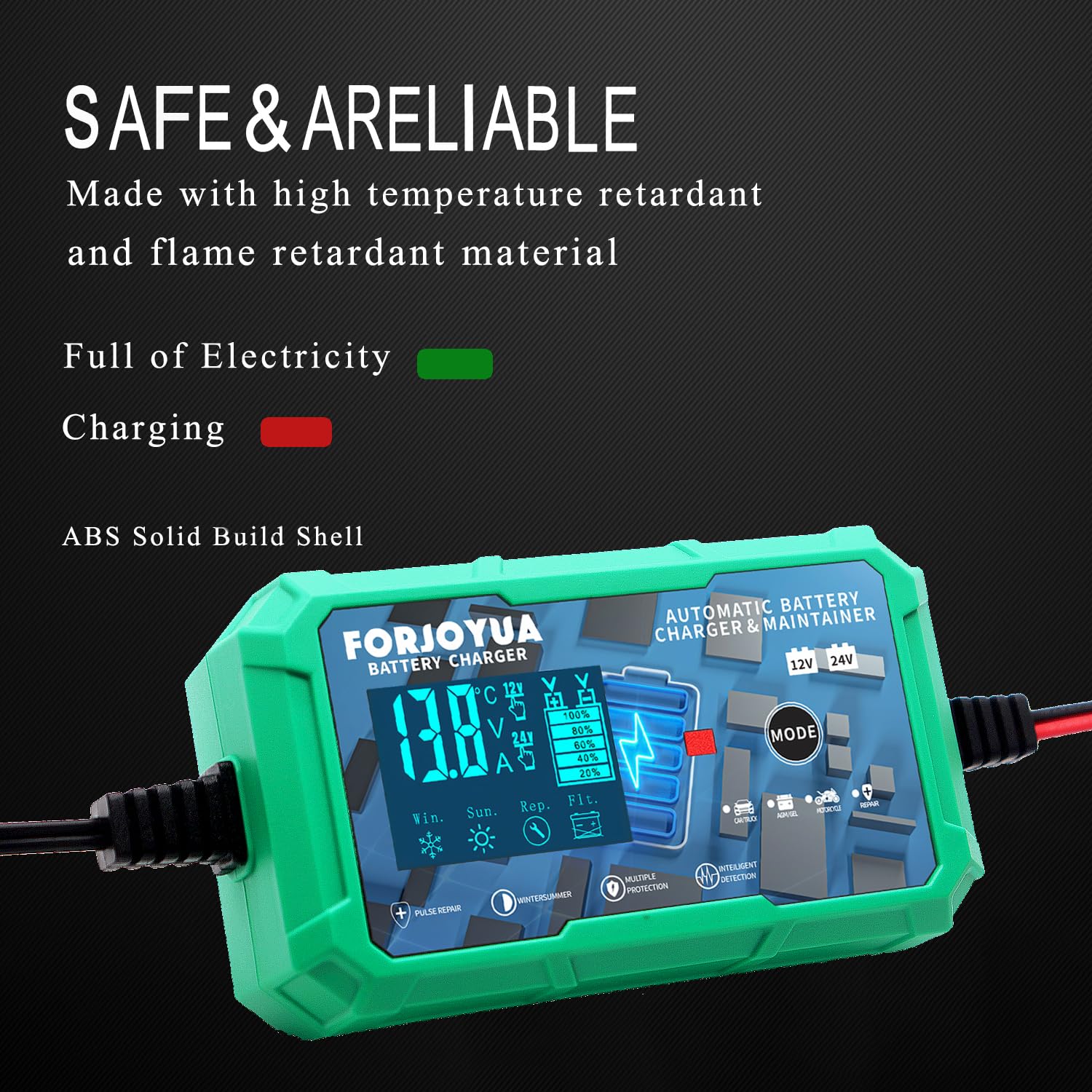 Com uma corrente de saída de 12V e 24V, o carregador é capaz de realizar um carregamento rápido e eficiente de diversos tipos de baterias de chumbo-ácido, reduzindo o tempo de espera e aumentando a produtividade. O design compacto e robusto do FORJOYUA 12V/24V garante durabilidade e confiabilidade, tornando-o um investimento inteligente para quem precisa de um carregador de alta performance.