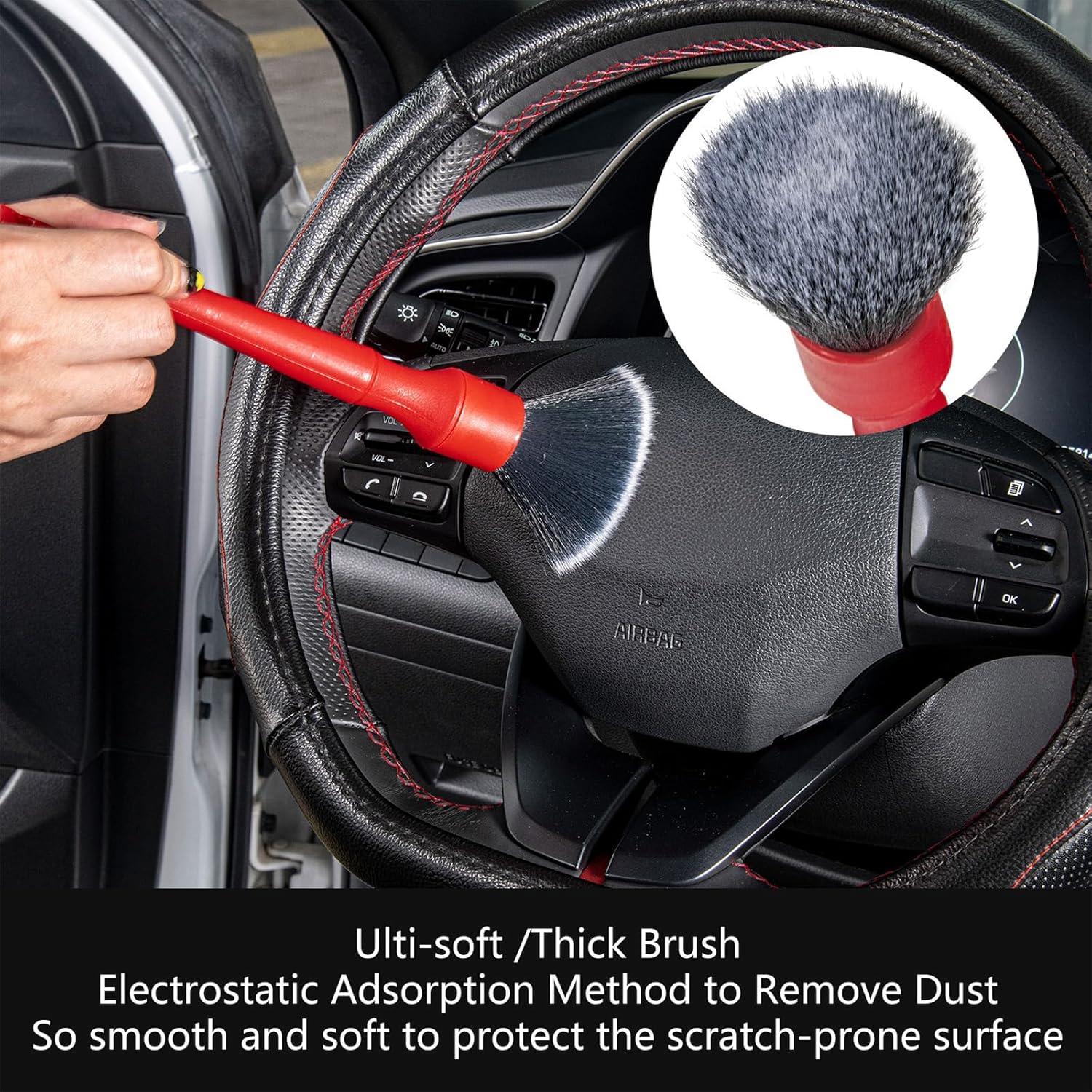 Escova de Interior Automotivo: Ideal para limpeza completa do carro, esta escova versátil é perfeita para interiores e exteriores, incluindo rodas, pneus, compartimento do motor e bancos de couro. Com cerdas macias, não arranha as superfícies e garante uma limpeza eficaz. Seu design ergonômico proporciona conforto durante o uso, enquanto a cor vermelha vibrante a torna fácil de localizar. Um item essencial para quem busca um kit de detalhamento automotivo completo e de qualidade.