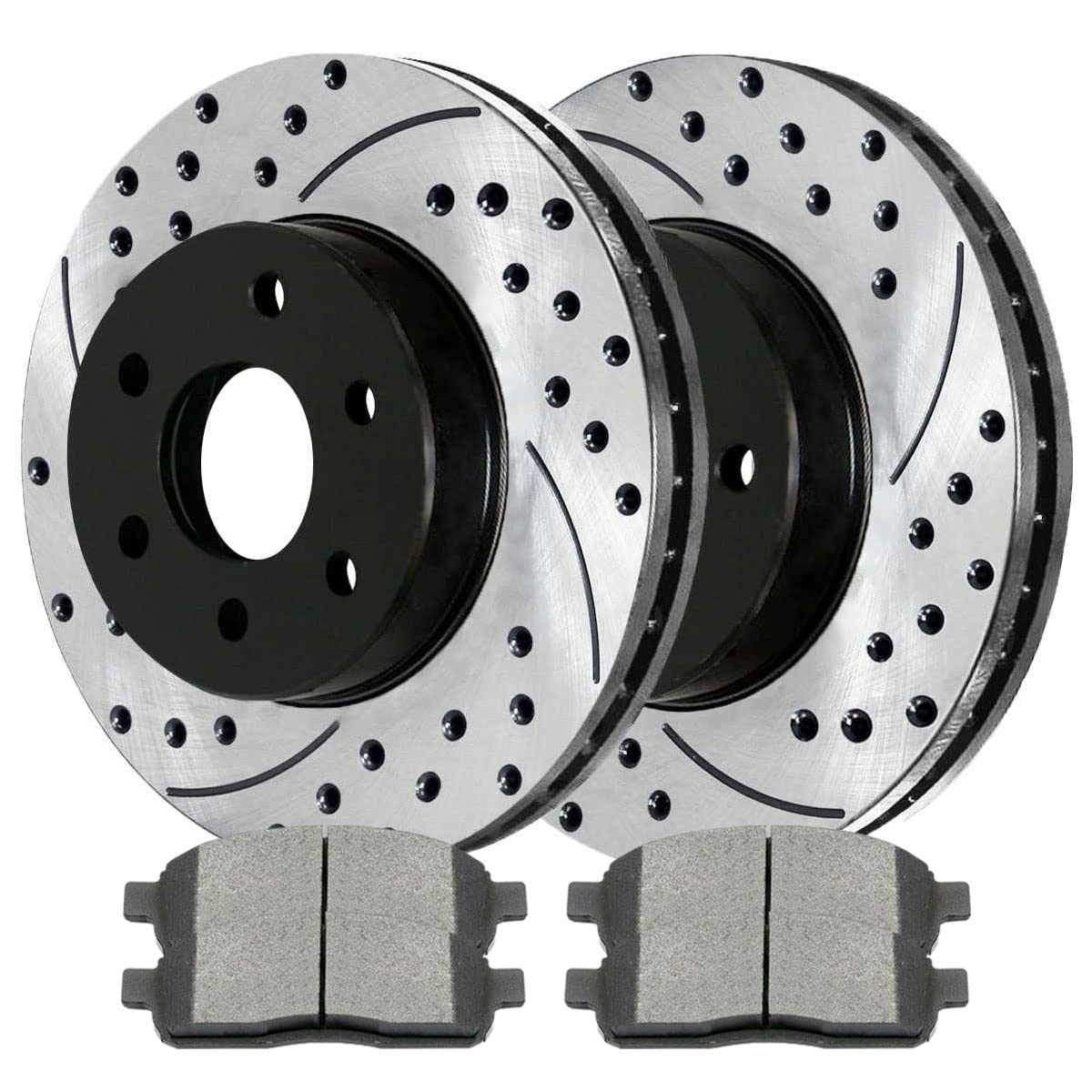 Drill and slotted rotors and ceramic pads for that price low dust and noise