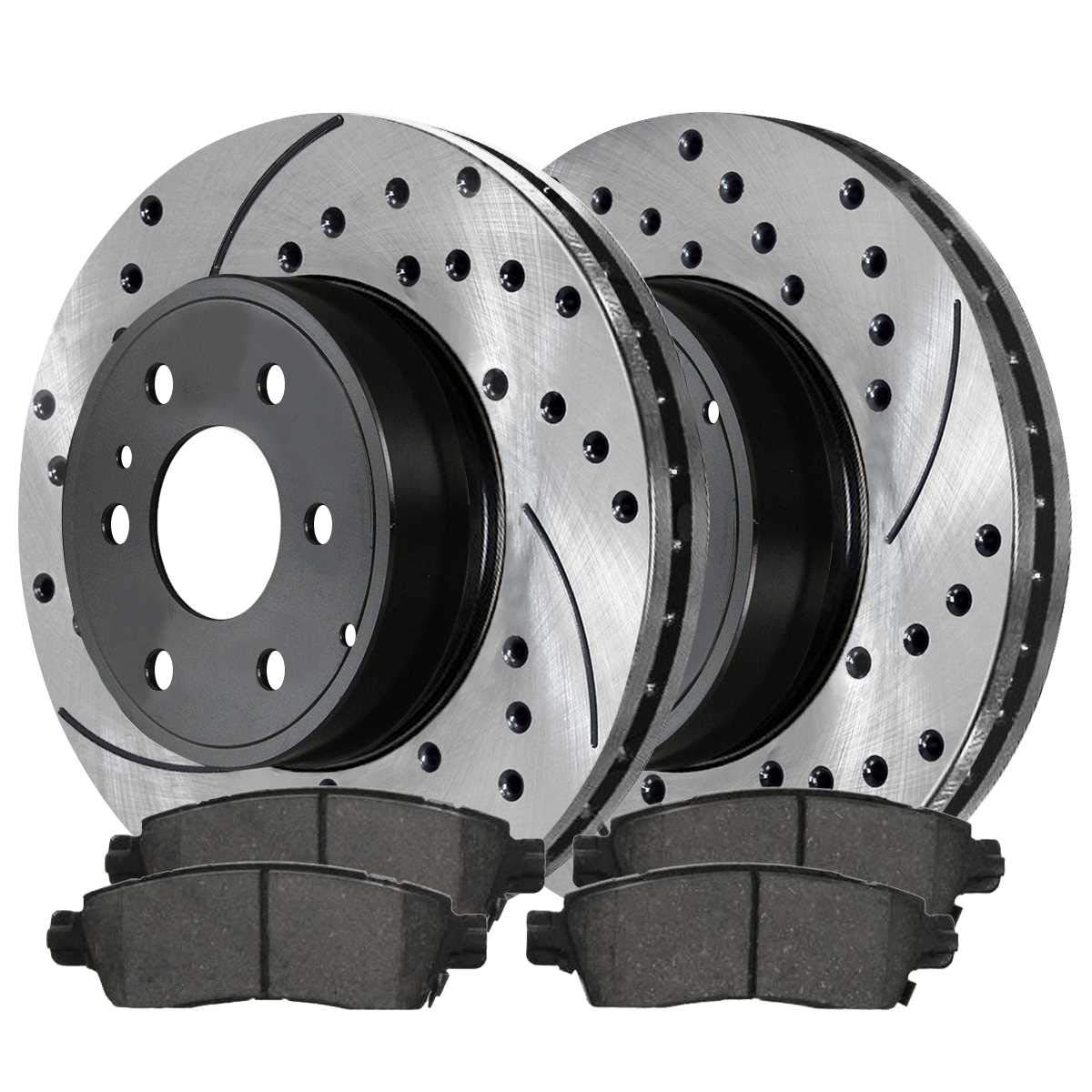 Purchased these drilled slotted rotors w/ ceramic brake pads on Amazon, for a fraction of the price i would’ve bought them anywhere else. Purchased all 4 and my local tire shop only charged me $180 to install all four. Driving a large suv and coming from regular very old rotors (probably oem), you can definitely feel the difference in stopping power. I definitely recommend these to anyone looking to upgrade their rotors. I can’t speak on longevity as i just got them installed, but it might outlast my car lol.