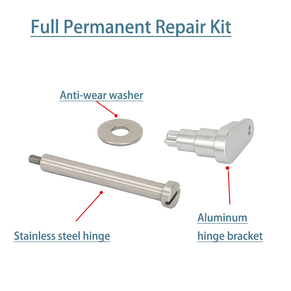 Kit comes with everything needed to do the repair. Milled aluminum hinge piece is easy to install & eliminates the problems of the OEM parts. Only concern is that the screw threads may back out over time, threadlocker should help.