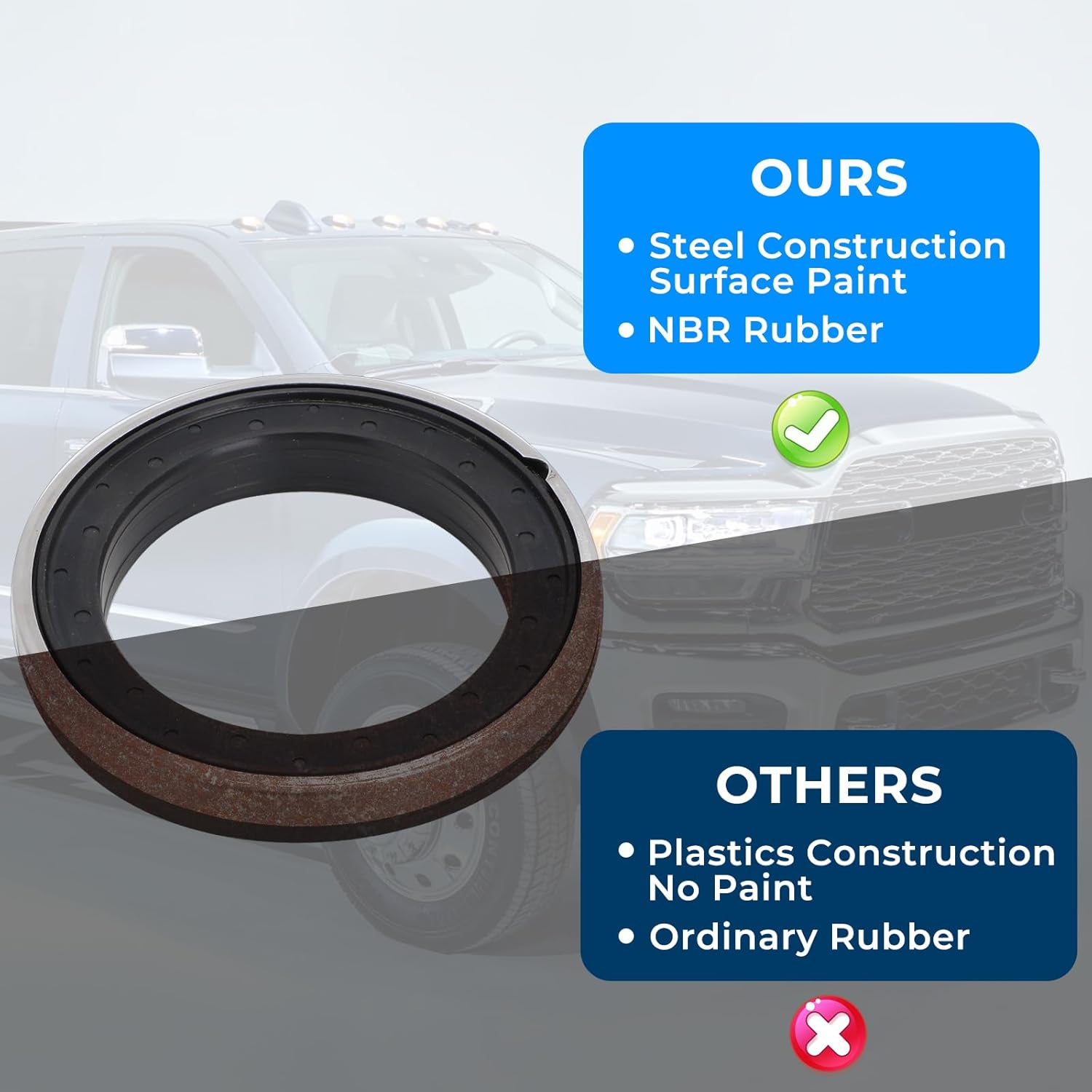 • Modelos Aplicáveis: O selo de rolamento de roda é compatível com os modelos 2019-2024 da RAM 3500, 4500 e 5500, garantindo um ajuste perfeito e funcionalidade ideal.