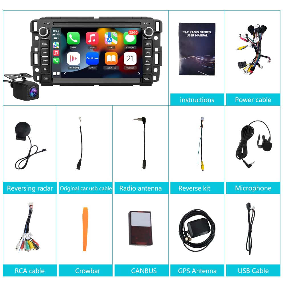 Descrição do Produto: AWESAFE Car Stereo Radio para Chevrolet Silverado Tahoe GMC Sierra Yukon 2007-2013