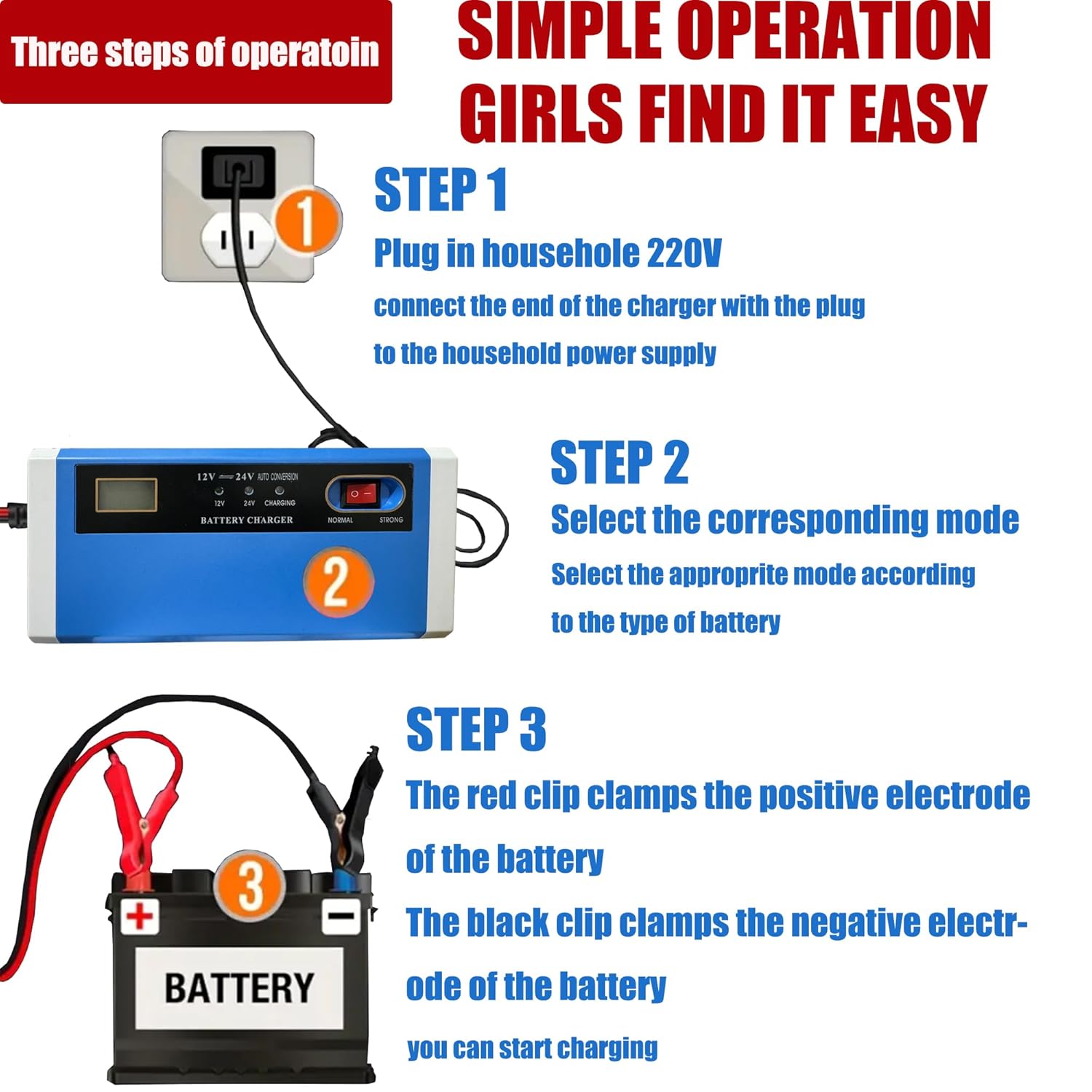– Compatibilidade Universal: Funciona com a maioria das baterias de chumbo-ácido de 12V e 24V.