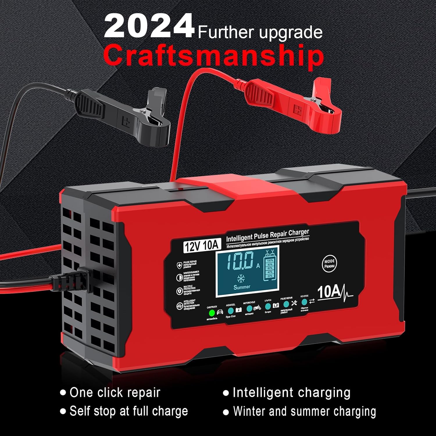 I bought this 10A 12V battery charger for my car, truck, and motorcycle, and it’s been excellent. It charges quickly and efficiently with the 8-stage trickle charging system. The LCD display is easy to read, and I love the temperature compensation feature for safer charging. It works well on my lawn mower too! A great, reliable charger for maintaining multiple vehicles, Highly recommend.