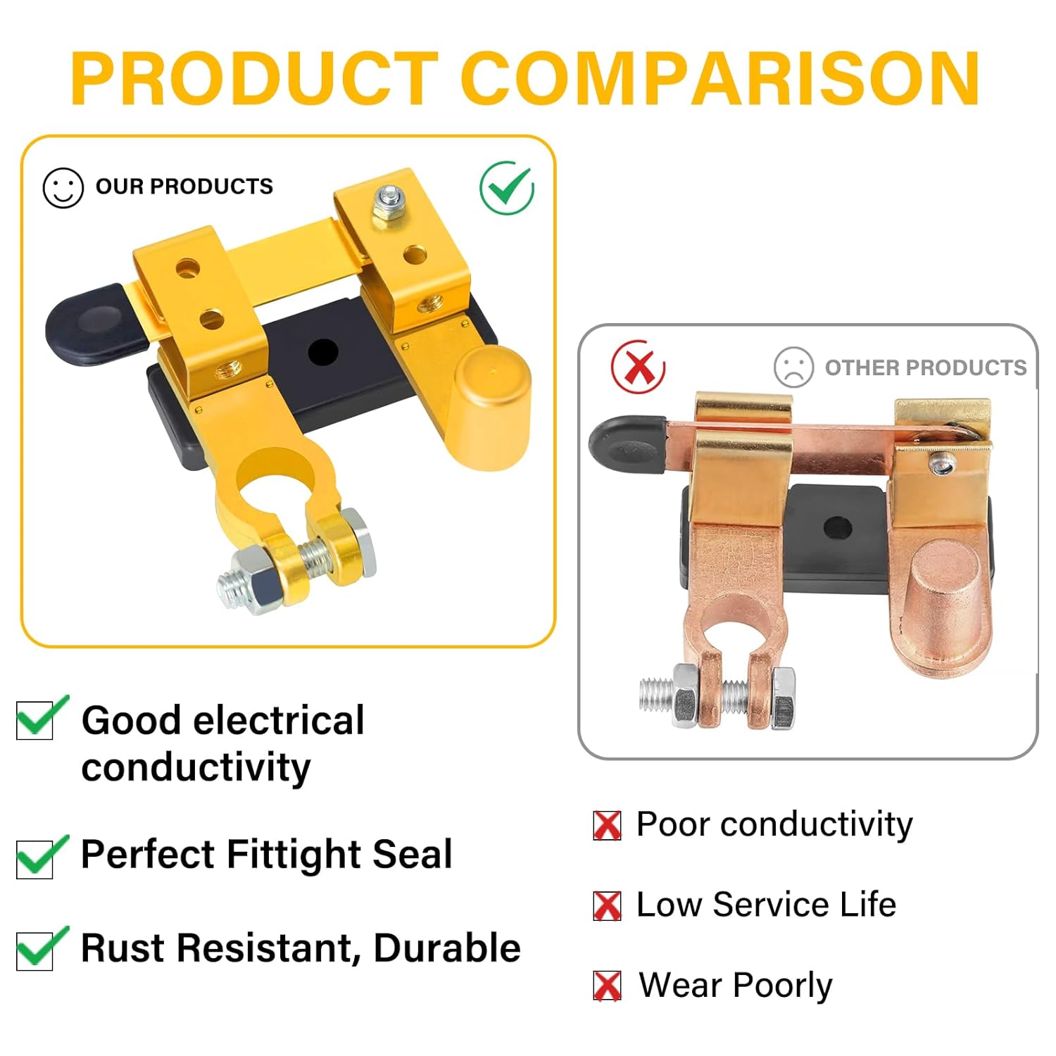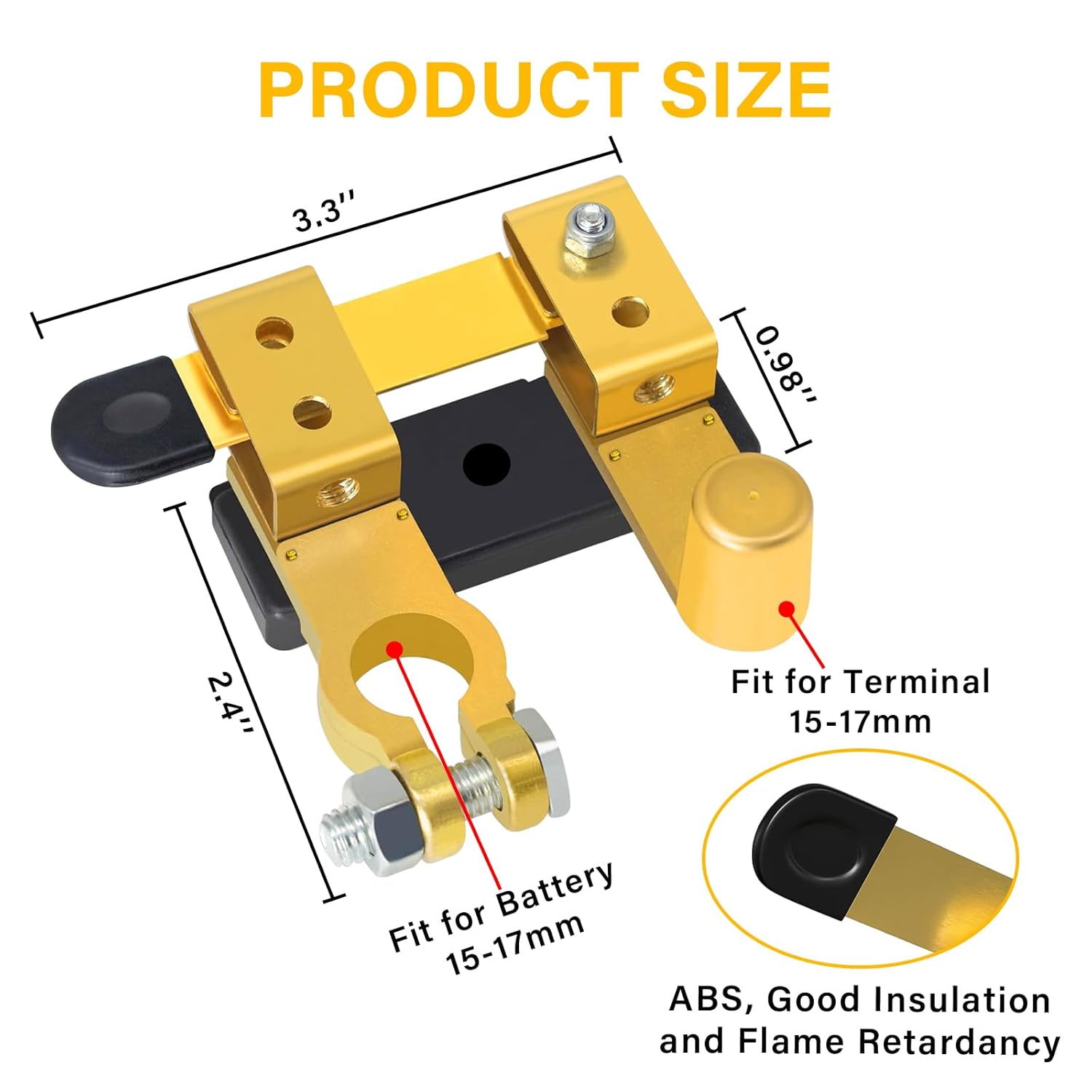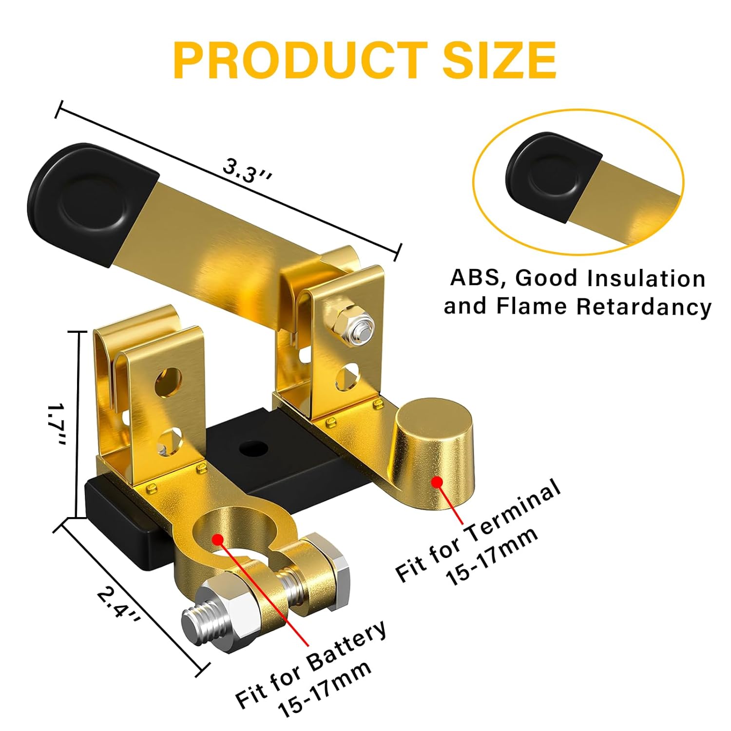 – Compatibilidade: Adequado para terminais de bateria de poste superior, funcionando com baterias de 12V e 24V.