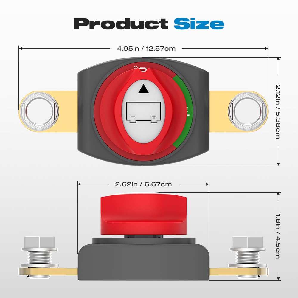 O design de poste lateral e os parafusos removíveis tornam o processo de instalação muito mais simples. Não é necessário adquirir cabos ou conectores adicionais; uma conexão direta à bateria é suficiente. Isso significa que você pode instalar o interruptor rapidamente, sem complicações.