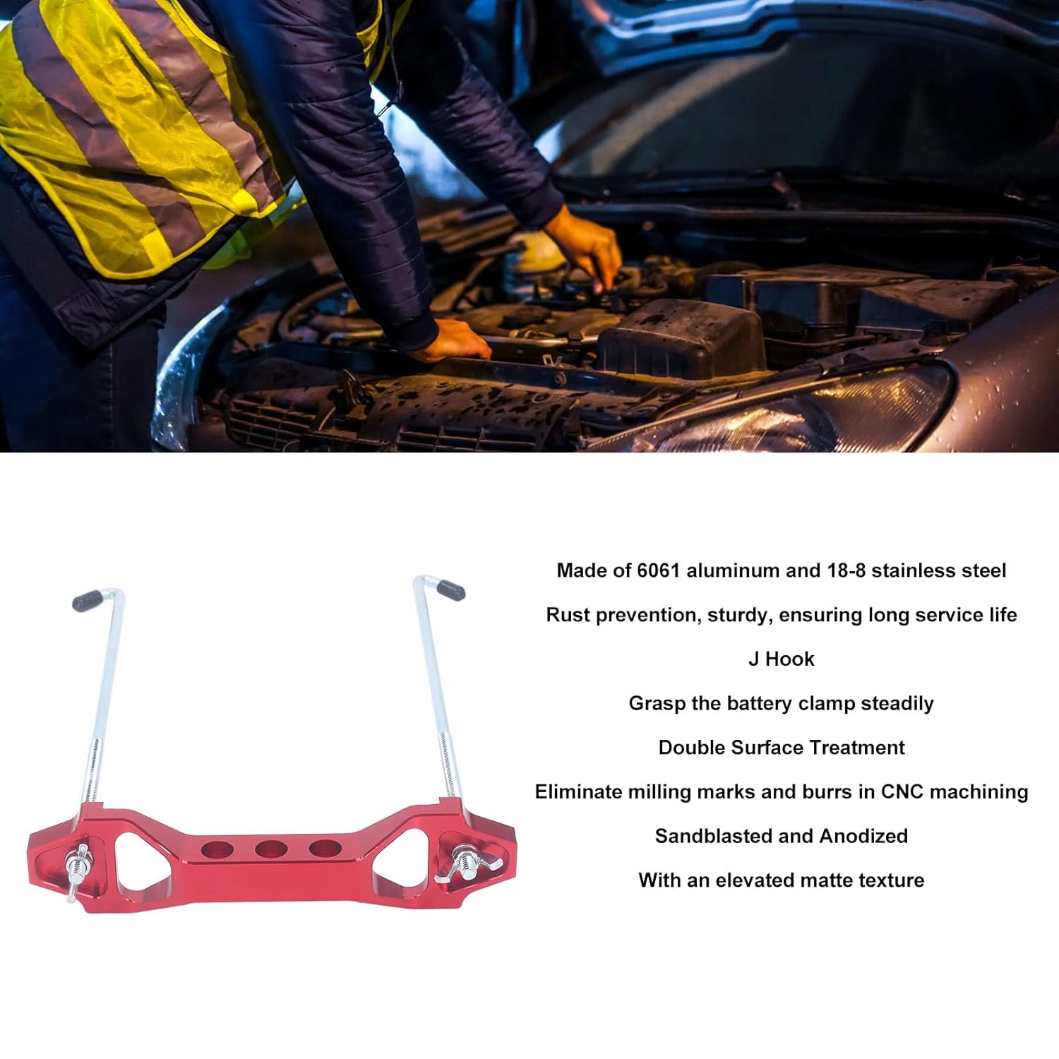 Apresentamos o Battery Hold Down Bracket Heavy Duty Aluminum Alloy Car Battery Holder with Stainless Steel J Bolt (Red), a solução definitiva para quem busca segurança e durabilidade na fixação da bateria do seu veículo. Este suporte é construído com alumínio 6061 de alta resistência e aço inoxidável 18/8, garantindo uma estrutura robusta que resiste ao desgaste do tempo e às condições adversas das estradas.