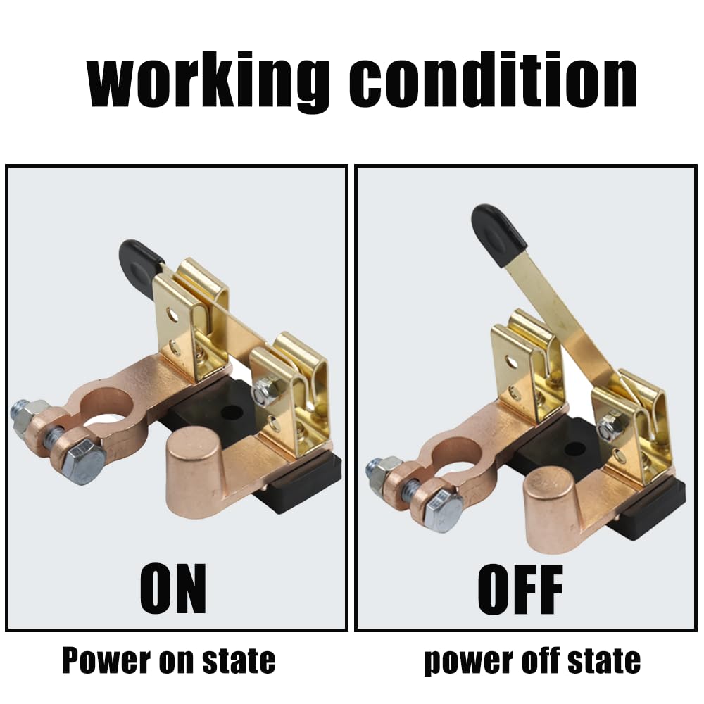 A instalação deste interruptor de lâmina é simples e prática. Ele deve ser montado no terminal negativo da bateria e pode ser ajustado para uma posição vertical através do parafuso na parte inferior, facilitando o acesso e a operação. Ao acionar o interruptor, a energia é cortada instantaneamente, proporcionando uma camada extra de segurança para veículos e equipamentos que ficam parados por longos períodos.