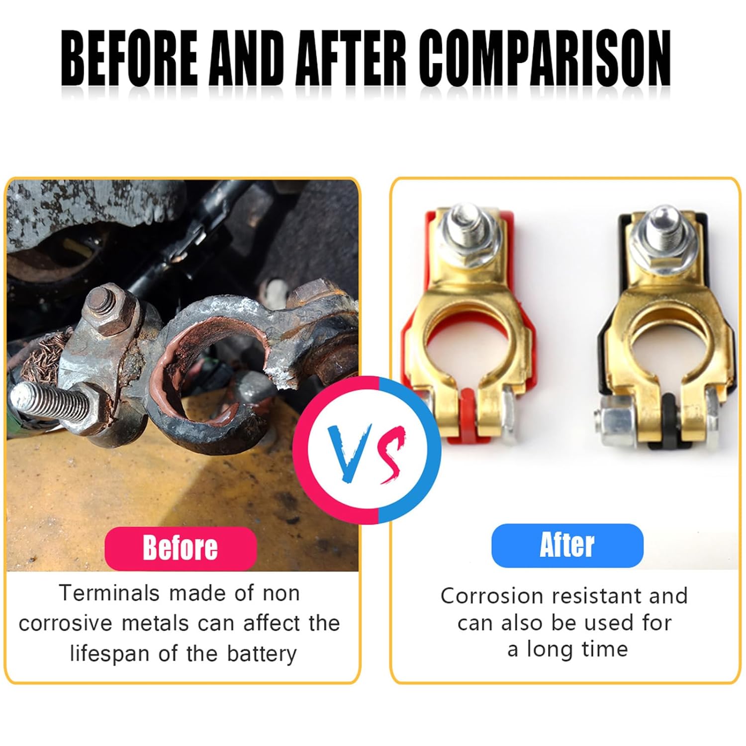 - Robusto e Durável: O conector de terminal de bateria é fabricado em cobre revestido de ferro, que conduz eletricidade de forma eficiente, reduzindo distorções de tensão e perdas de transmissão. É resistente e durável, com excelente resistência à ferrugem, oxidação e corrosão. A carcaça protetora é feita de plástico duro, totalmente à prova d’água e resistente ao desgaste.
