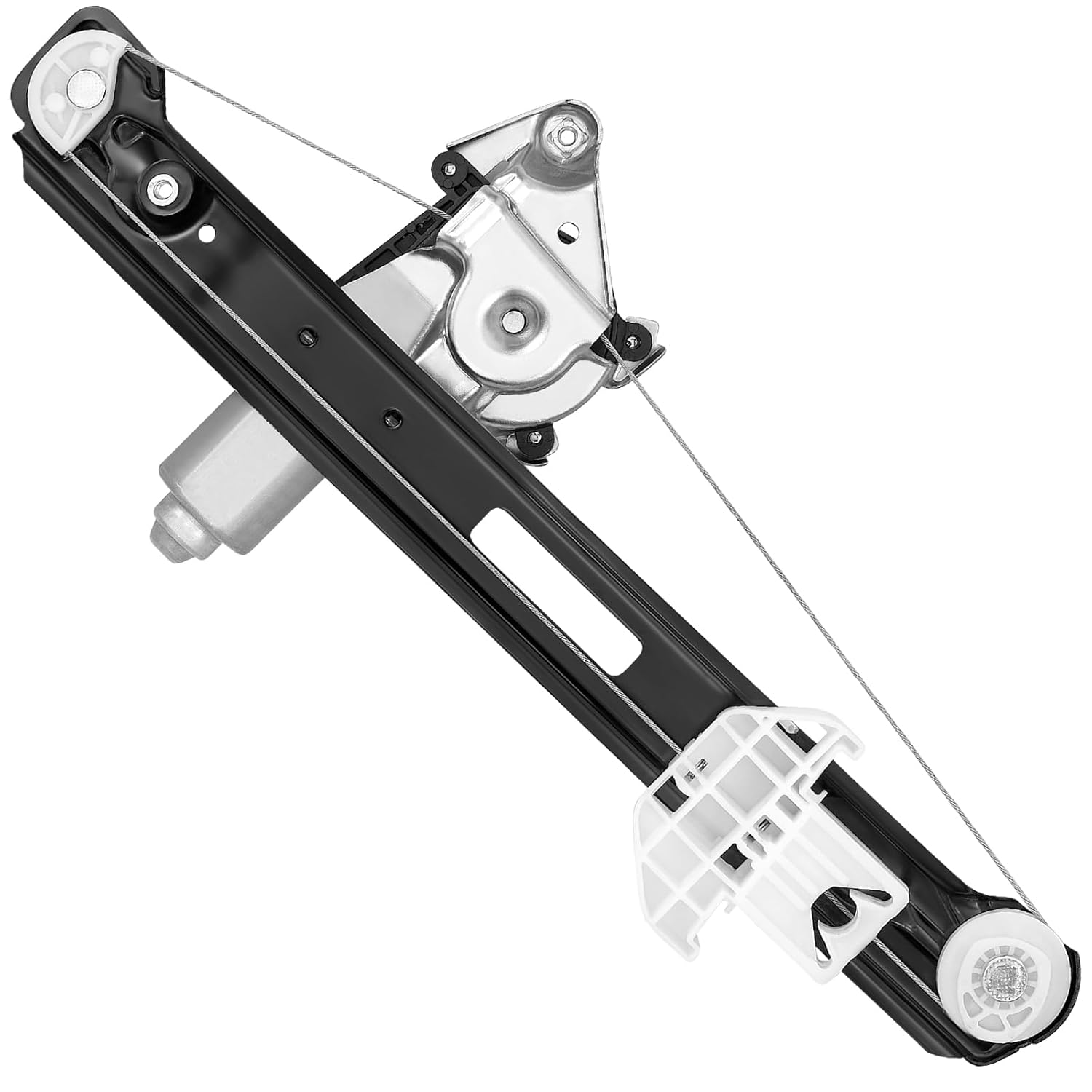 - Qualidade Premium: Este conjunto de regulador de janela e motor apresenta aprimoramentos significativos em relação à peça de fábrica, proporcionando um nível de confiabilidade superior. Incorpora molas de tensão que resistem efetivamente ao enrosco do cabo, causado pelo uso prolongado. Além disso, é equipado com guias de cabo avançadas que eliminam a alta tensão do cabo e reduzem o estresse do mesmo.
