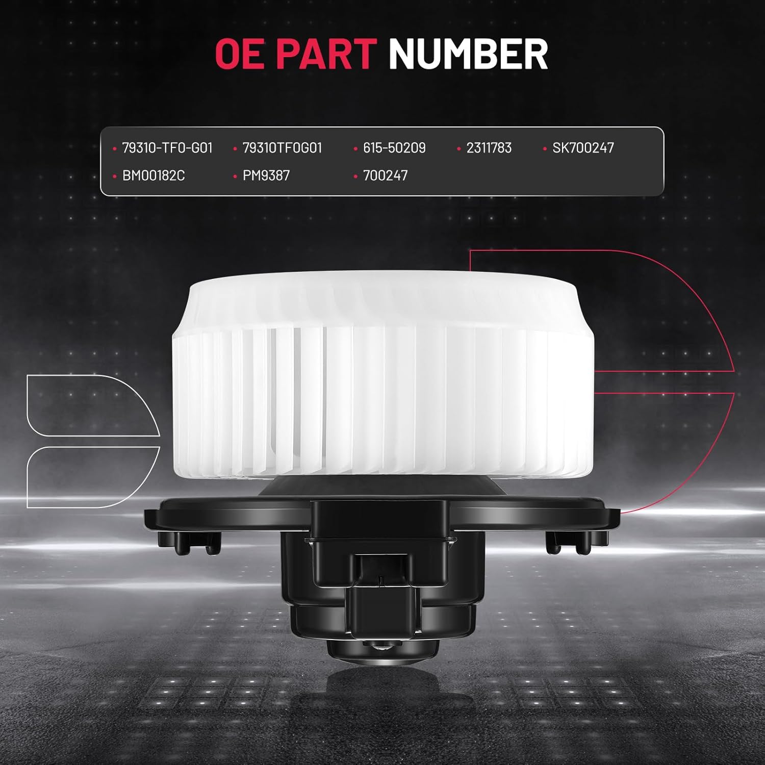 - Números de Peça Compatíveis: Substituição para o motor do ventilador com os números OE: 79310-TF0-G01, 79310TF0G01, 615-50209, 2311783, SK700247, BM00182C, PM9387, 700247.