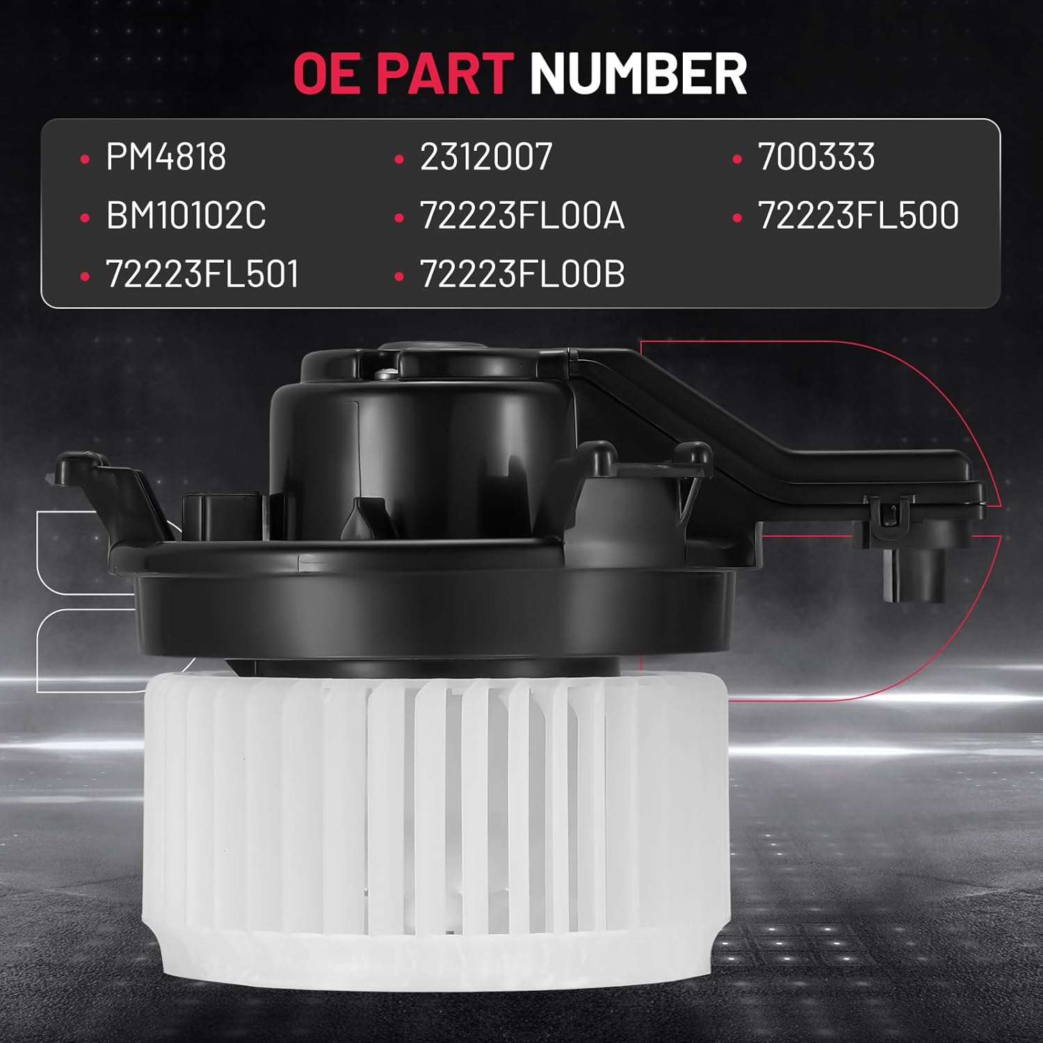 Este motor de ventilador é um substituto direto para os números de peça OE: PM4818, 2312007, 700333, BM10102C, 72223FL00A, 72223FL500, 72223FL501 e 72223FL00B, facilitando a instalação e a substituição.